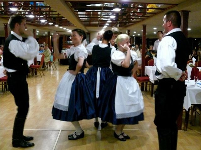 Von der Donau aus sieht alles anders aus, da muss dem Kapitän und auch dem Bankettmanager Recht gegeben werden. Auf der Donau zu arbeiten sei eine Lebensform, die man nur ungern aufgeben würde, sagen sie beide. Was beim Anblick des Ufers, der imposanten Gebäude, der Brücken, der Marghareteninsel leicht zu glauben ist. Jede Jahreszeit bringt neue Schönheiten zum Vorschein und auch der Fluss soll an keinem Tag derselbe sein. Als das Schiff weit über der Árpád Brücke wendet, gehen überall an dem Ufer die Lichter an und Budapest zeigt sich von seiner wunderschönsten Seite. Während dessen marschieren Tänzer auf, denn Tanzlehrer und Koreograph Nikolaus Manninger brachte drei Paare vom Schorokscharer Deutschen Nationalitätentanzverein mit, die ungarndeutsche Tänze vorführten.