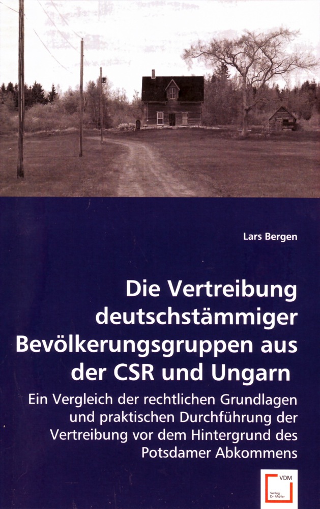 Lars Bergen: Die Vertreibung deutschstämmiger Bevölkerungsgruppe aus der CSR und Ungarn. Ein Vergleich der rechtlichen Grundlagen und praktischen Durchführung der Vertreibung vor dem Hintergrund des Potsdamer Abkommens.