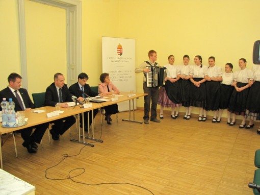 Über die Ergebnisse berichtete György Hölvényi, der verantwortliche Staatssekretär für Nationalitäten- und zivilen Gesellschaftskontakte und der stellvertretende Staatssekretär Dr. Csaba Latorcai am Ministerium für Humanressourcen in einer Pressekonferenz am 16. April im Haus der Ungarndeutschen. Bei der Veranstaltung wirkte auch der Chor der Nationalitätengrundschule Taksony Vezér aus Taks mit.