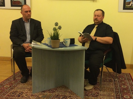 Nachdem Becker eine reiche Auswahl der frisch erschienenen Gedichte vorgelesen hatte, sprach er und B. Szabó über den dichterischen Prozess des Autors. Dabei lag der Akzent auf der Entstehung der Werke. Becker sagte, es gebe keinen festen Regel, wie von den Grundideen die Werke sich entwickeln, aber man könne von einer inneren Spannung um den Kerngedanke sprechen. Wichtig ist, dass die vollendeten Gedichte verständlich bleiben. B. Szabó wies auf die vielen intertextuellen Elemente in Beckers Dichtung hin, besonders hinsichtlich der Bibel. Der religiöse Einfluss ist teilweise mit dem theologischen Studium zu erklären. Man erfuhr, dass es mehrere Versionen des Titels gab, und sie mehrere Bedeutungsebenen habe wie z. B. der Bündel, mit dem die Vorfahren ins Land kamen und es damit wieder verlassen mussten, oder dass er seine Werke einmal in einem zusammensammelte. Den Titel schlugen Becker übrigens seine Dichterkollegen beim Verband Ungarndeutscher Autoren und Künstler vor.