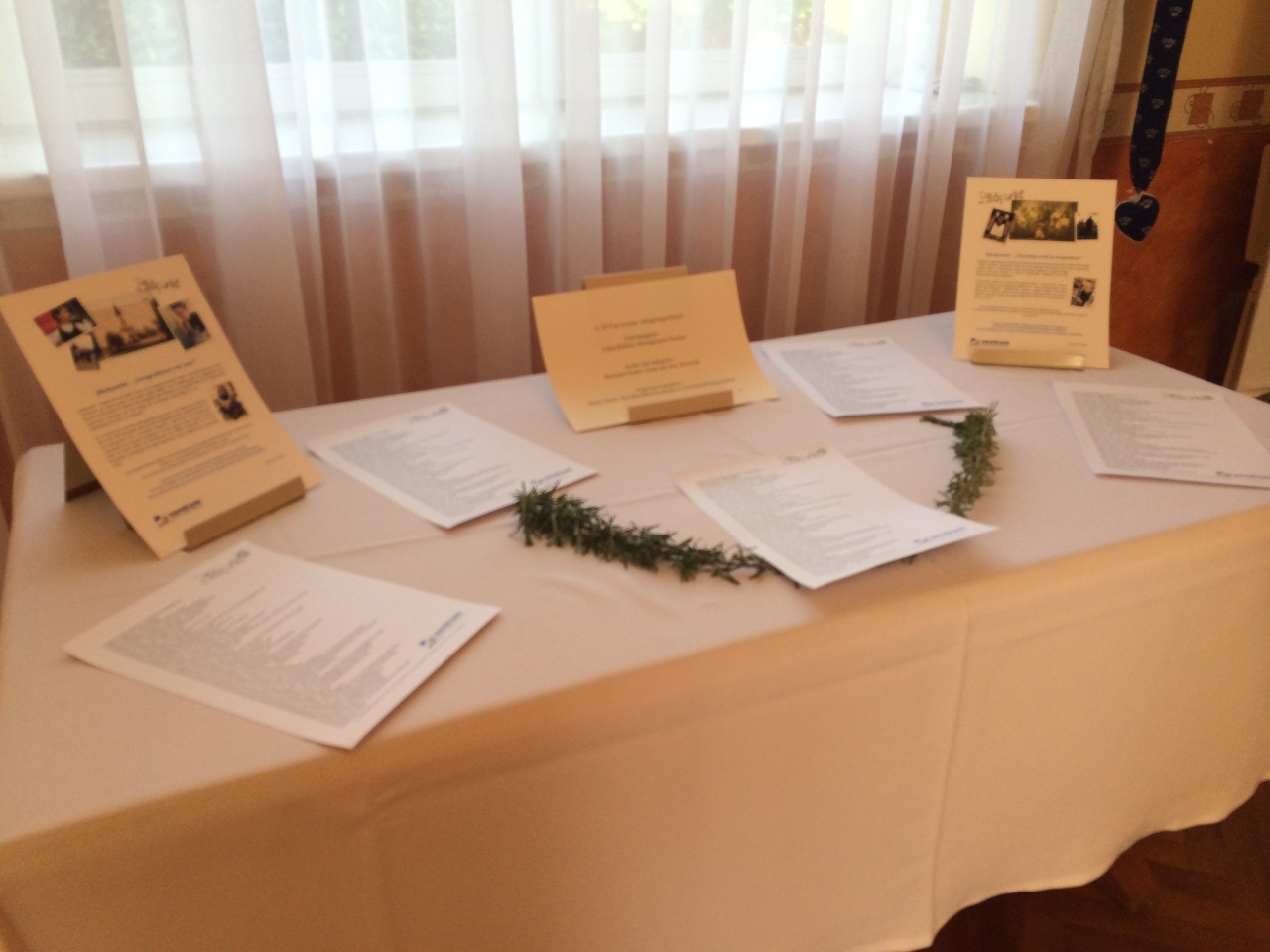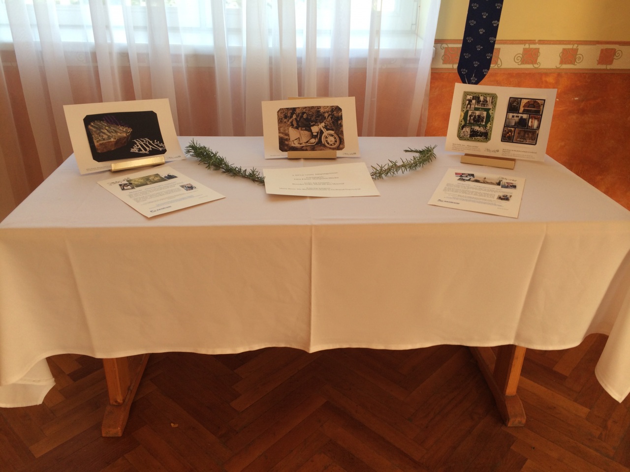 Das Programm wurde mit einem Platzkonzert der Blaskapelle aus Lippwar/Lippó eingeleitet. Im Rahmen der Feier wird jedes Jahr eine Ausstellung eröffnet. Dieses Mal wurde die Blickpunkt 2013 – Wanderausstellung des Ungarndeutschen Kultur- und Informationszentrums eingeladen, die von Csilla Erb-Merkler, der Vorsitzenden der Deutschen Nationalitätenselbstverwaltung bzw. Monika Ambach, der Direktorin des Zentrums eröffnet wurde. Die Gäste bewunderten die wunderschönen Bilder nicht nur mit Freude, sondern auch mit Stolz, denn letztes Jahr war das Gewinnerbild der Kategorie Postkarte Die Blaufärberwerkstatt in Großnarad/Nagynyárád von Maria Hinze. Der mit Recht im ganzen Land bekannte Blaufärber Johann Sárdi, der bald seinen 94. Geburtstag feiert, war auch anwesend und betonte, dass diese Arbeit Gottes Gabe sei. Die vom immer fröhlichen Meister Sárdi gefärbten Stoffe sind überall aufzufinden, man merkt schnell, dass die Naarader die Blaufärbertradition zu schätzen wissen.