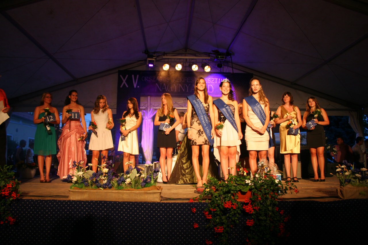 Junge Damen aus zahlreichen ungarndeutschen Orten von Hetfell bis Baje, von Surgetin bis Waschkut stellten sich dem mehr als tausend Zuschauer zur Schau. Um die Teilnehmerinnen – wenn das überhaupt möglich ist – noch schöner zu machen, erhielten sie prächtige Kleider, darunter auch Blaufärberprodukte. Die Mädels mussten sich auch in ein paar Worten vorstellen, und zu prüfen, ob sie wirklich Schwäbinnen sind, in Mundart.