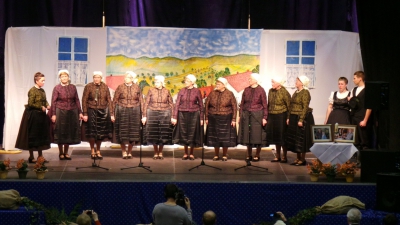 Nach der Freude über verdienstvolle Arbeit kam die Trauer, das Gedenken an die zwei verstorbenen Choreographen Nikolaus Manninger und Josef Wenczl. Der Schaumarer Frauenchor sang das Lied „Wenn die Schwalben…“, der Haraster Ungarndeutsche Jugendverein tanzte die Manninger-Choreographie „Marsch und Zeppel“ und der Leinwarer Ungarndeutsche Kulturverein brachte Josef Wenczls „Schwabenfest“ auf die Bühne.