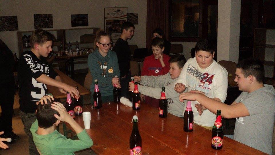Für den nächsten Vormittag war nach dem Frühstück ein Ausflug zur Eislaufbahn geplant, doch leider machte uns das Wetter einen Strich durch die Rechnung, denn seit früh am Morgen schneite es sehr stark und bei Schneefall wurde die Eislaufbahn nicht geöffnet. Schnell musste für ein Alternativprogramm gesorgt werden, was aber kein Problem war, da die Jugendlichen nicht lange zu einem Vormittag im Kino überredet werden mussten. Nach dem Film folgte das Mittagessen und für den Nachmittag war ein lustiges Bastelprogramm geplant in dessen Rahmen die Anwesenden auch Dekoration für die Vorsilvesterfeier am nächsten Abend angefertigt haben. Nach dem Abendessen folgte dann an diesem Abend das traditionelle Juniorenvorsilvester mit einem ungarndeutschen Tanzhaus unter der Leitung unserer Multiplikatoren Adél Hahn und Flóra Tillmann und dem Sektkorkenknallen (selbstverständlich mit Kindersekt) um Mitternacht. Die Laune war so gut, dass die Feier sich noch lange hinzog und alle fühlten sich sehr wohl, was wir auch aus den Bewertungsbögen des Programmes herauslesen konnten. Am nächsten Morgen folgte nach dem Frühstück der Abschied und die Teilnehmer wurden von ihren Eltern abgeholt. Auch 2014 haben wir ein tolles Juniorenvorsilvesterprogramm erleben dürfen und hoffen, dass auch im nächsten Jahr eine Fortsetzung folgt.