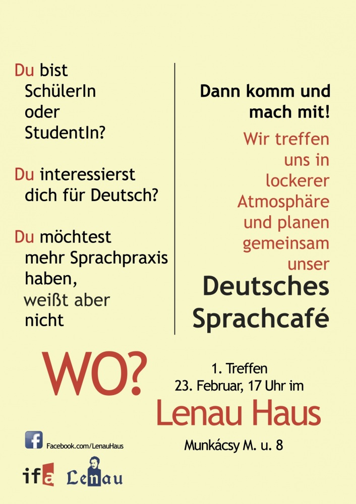 Das Lenau-Haus möchte SchülerInnen und StudentInnen die Möglichkeit und den Raum anbieten, in einer Gemeinschaft, in einer lockeren Atmosphäre Deutsch zu sprechen, die Sprachpraxis zu verbessern und dabei auch Spaß zu haben.