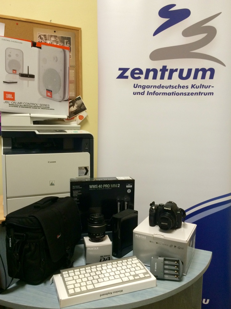 Eine Fördersumme von rund 3032 Euro konnte im Dezember 2014 für die Anschaffung technischer Geräte verwendet werden. Durch die Unterstützung konnten veraltete Geräte durch neue ersetzt werden. Die gekauften Geräte werden bei den Zentrum-Programmen im Haus der Ungarndeutschen eingesetzt bzw. erleichtern den Büroalltag.