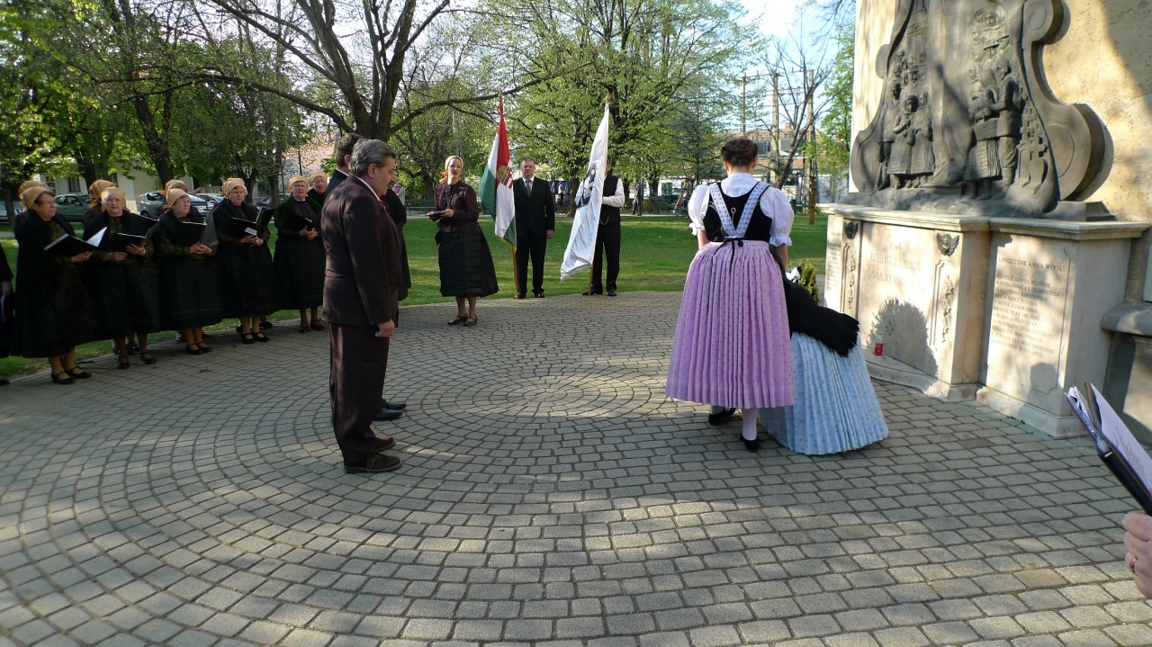 Nach der Feier zogen die Teilnehmer, darunter auch die Vertreter des Landesrates der ungarndeutschen Chöre, Kapellen und Tanzgruppen, feierlich zum Denkmal der Vertriebenen und legten Kränze der Erinnerung nieder, damit die tragischen Ereignisse niemals vergessen werden.