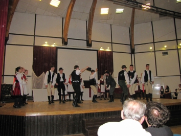 Wie gut diese beiden Unternehmungen gelangen, bewiesen sie am Ende des Werischwarer Gegenbesuchs der Schüler aus Borseck am 4. Mai. Da traten die Schüler im Theatersaal des Friedrich-Schiller-Gymnasiums auf. Im Schauspiel wurden Szenen aus dem Leben von König Matthias auf die Bühne gestellt. Eingebettet in die Hochzeitsszene gelangten – als Hochzeitsgeschenk der verschiedenen Völker – die einstudierten Tänze auf die Bühne. Hier endete aber die gute Laune nicht, es entwickelte sich ein spontaner gemeinsamer Tanz, in den sich auch zahlreiche Zuschauer einbinden ließen. Feines Essen, viel Geplauder und Gelächter rundeten den letzten der fünf Werischwarer Tage ab.