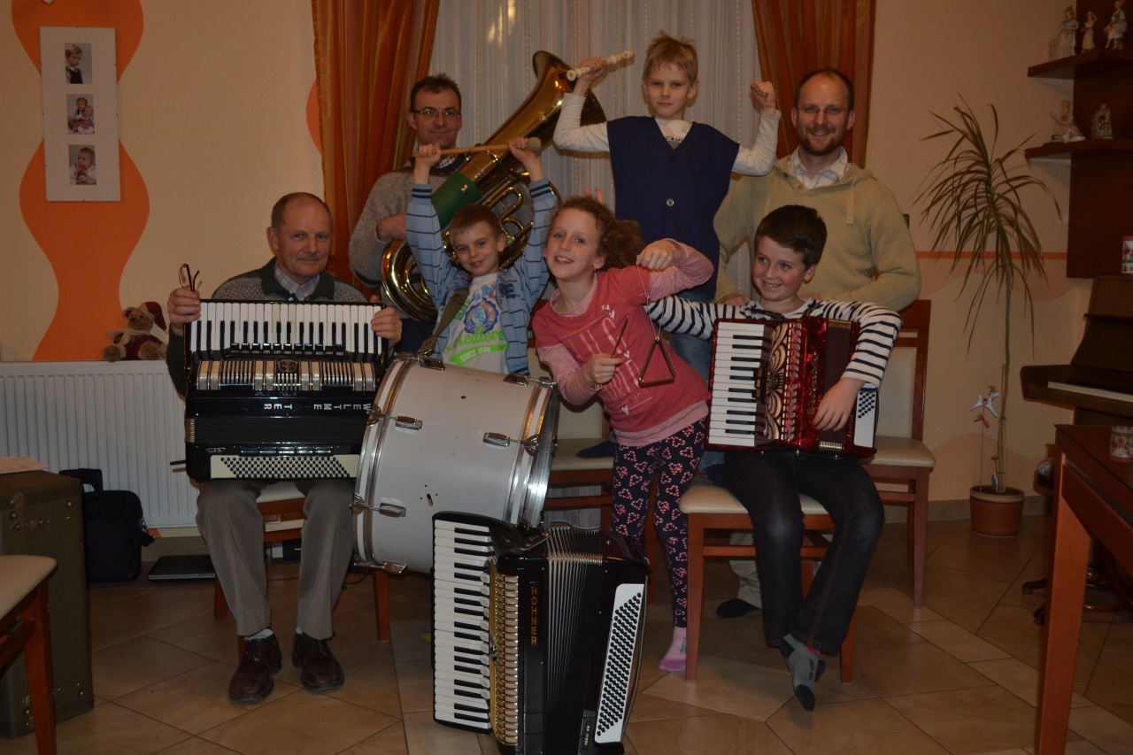 Die Familie Sax aus Werischwar und Leinwar. László Sax (Senior), László Sax (Junior), Norbert Sax, Noel Sax, Bernárd Sax, Xavér Klein und Léna Klein werden am Montag für AdventsSTIMMUNG sorgen!