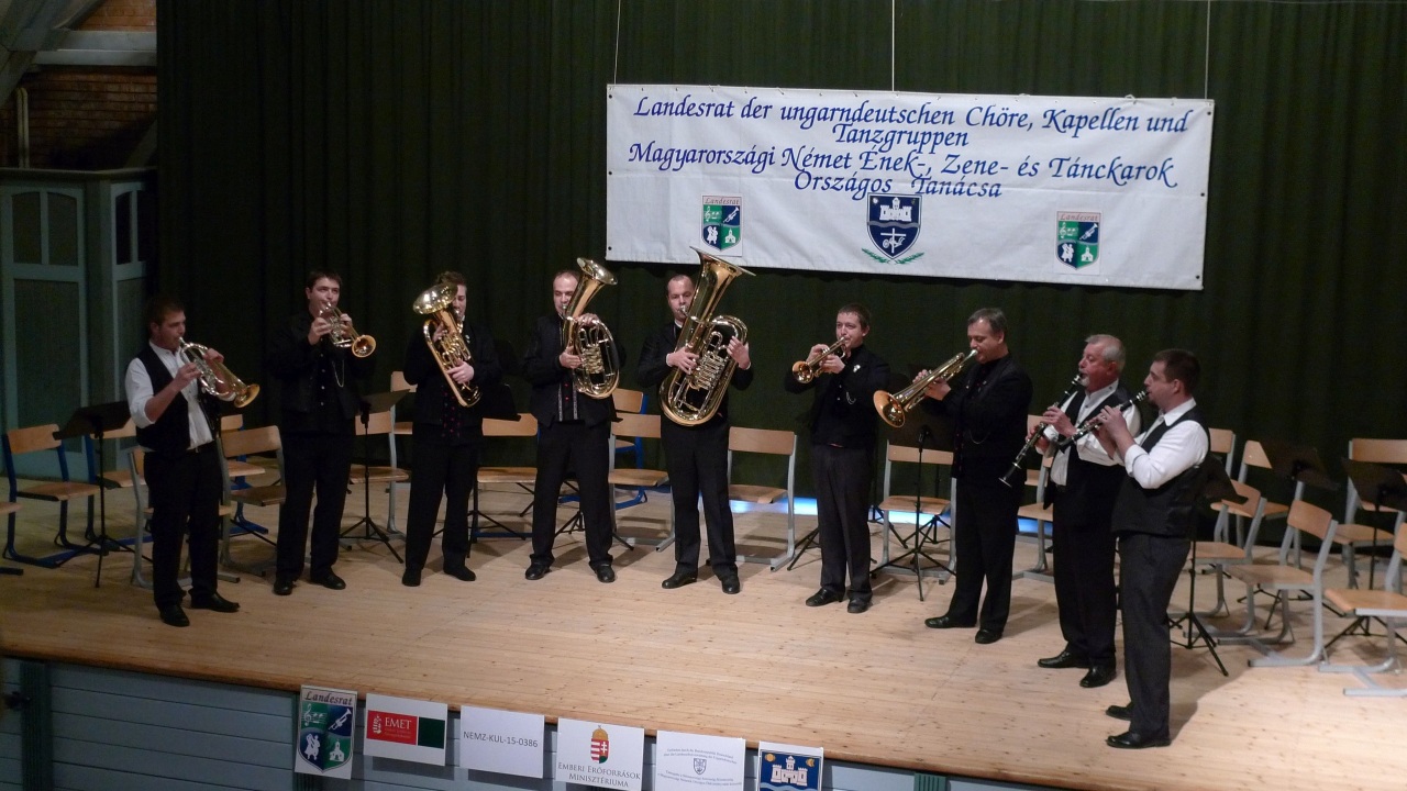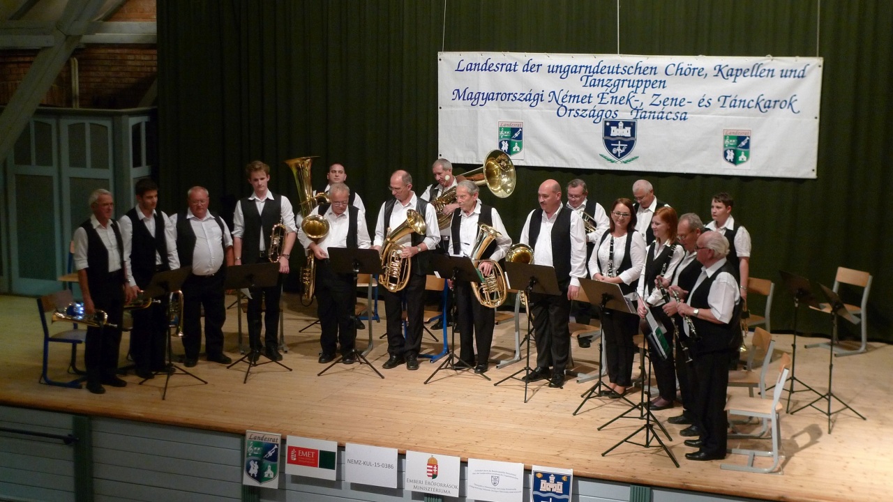 Die Grossturwaller Musikanten (Törökbálint) unter Landeskapellmeister László Bán, die Werischwarer Blaskapelle (Pilisvörösvár) dirigiert vom Vorsitzenden der Blasmusiksektion des Landesrates Bálint Buzás, „Die Neun Branauer Musikanten” geleitet vom Vizevorsitzenden der Blasmusiksektion Johann Hahn, die „Kisduna” Blasmusik aus Harast (Dunaharaszti) unter dem Dirigenten László Rainer-Micsinyei, die „Alte Kameraden“ Blaskapelle aus Nadasch (Mecseknádasd) geleitet von János Ritter und Antal Kollár, die „Freude“ Kapelle aus Berzel (Ceglédbercel) unter der Leitung von Josef Kaposi und der Musikverein Wetschesch (Vecsés) dirigiert von Emmerich Szábo.