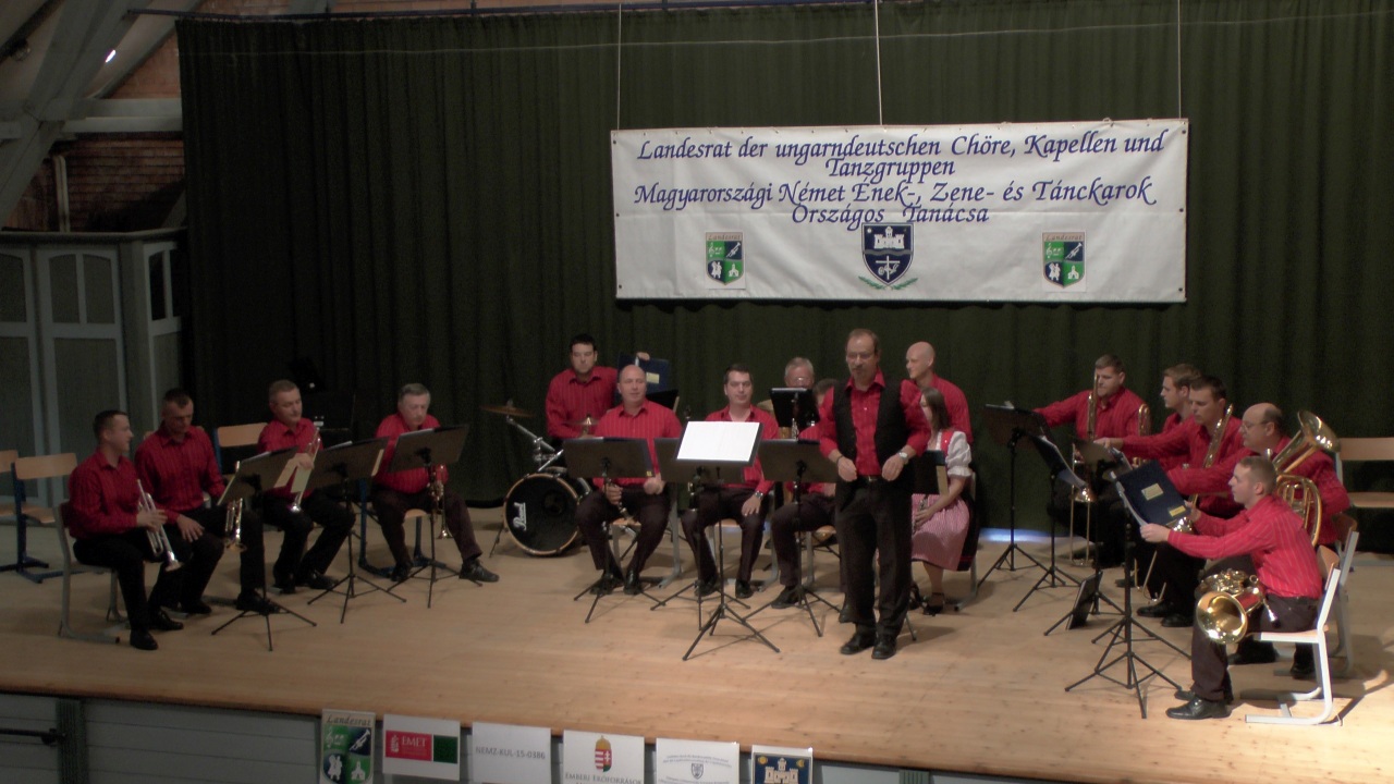 László Kreisz, der Vorsitzende des Landesrats der ungarndeutschen Chöre, Kapellen und Tanzgruppen sowie die Vorsitzende der örtlichen DNSV Monika Tófalvi richteten die Grußworte an das Auditorium und die Kapellen und erklärten in kurzen Worten den Zweck dieser Veranstaltung.