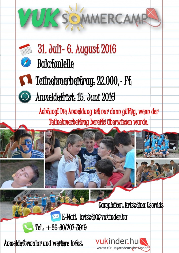 Der Verein für Ungarndeutsche Kinder organisiert zwischen dem 31. Juli und dem 6. August 2016 ein Sommercamp in Balatonlelle. Anmeldefrist ist der 15. Juni.
