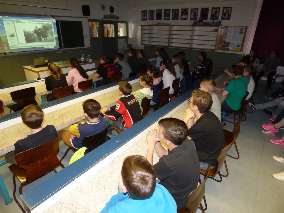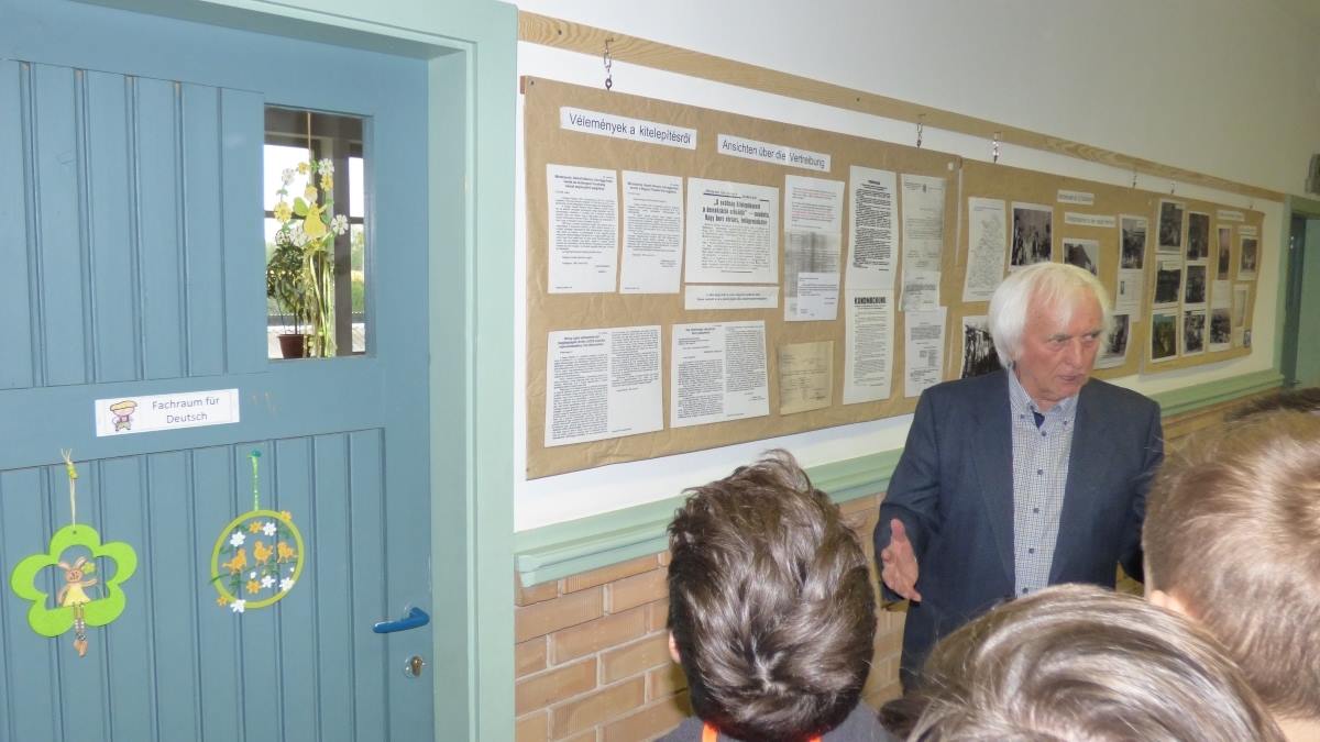 Zu diesem Anlass hat Michael Frühwirth, der Vorsitzende des Kulturvereins Wetschesch einen Vortrag über die Vertreibung für unsere Oberstufenkinder gehalten. Obwohl die Kinder schon Vieles über die Vertreibung der Ungarndeutschen gehört hatten, hörten sie den Vortrag mit großem Interesse zu. Herr Frühwirth brachte ihnen die traurige Geschichte sehr nah zu, da er auch über die Schicksalsschläge der Wetschescher Deutschen erzählte. In seinem Vortrag spielte er auch Aufnahmen ab, auf denen vertriebene Wetschescher über ihre Vertreibung, ihre Heimsuchung erzählten.