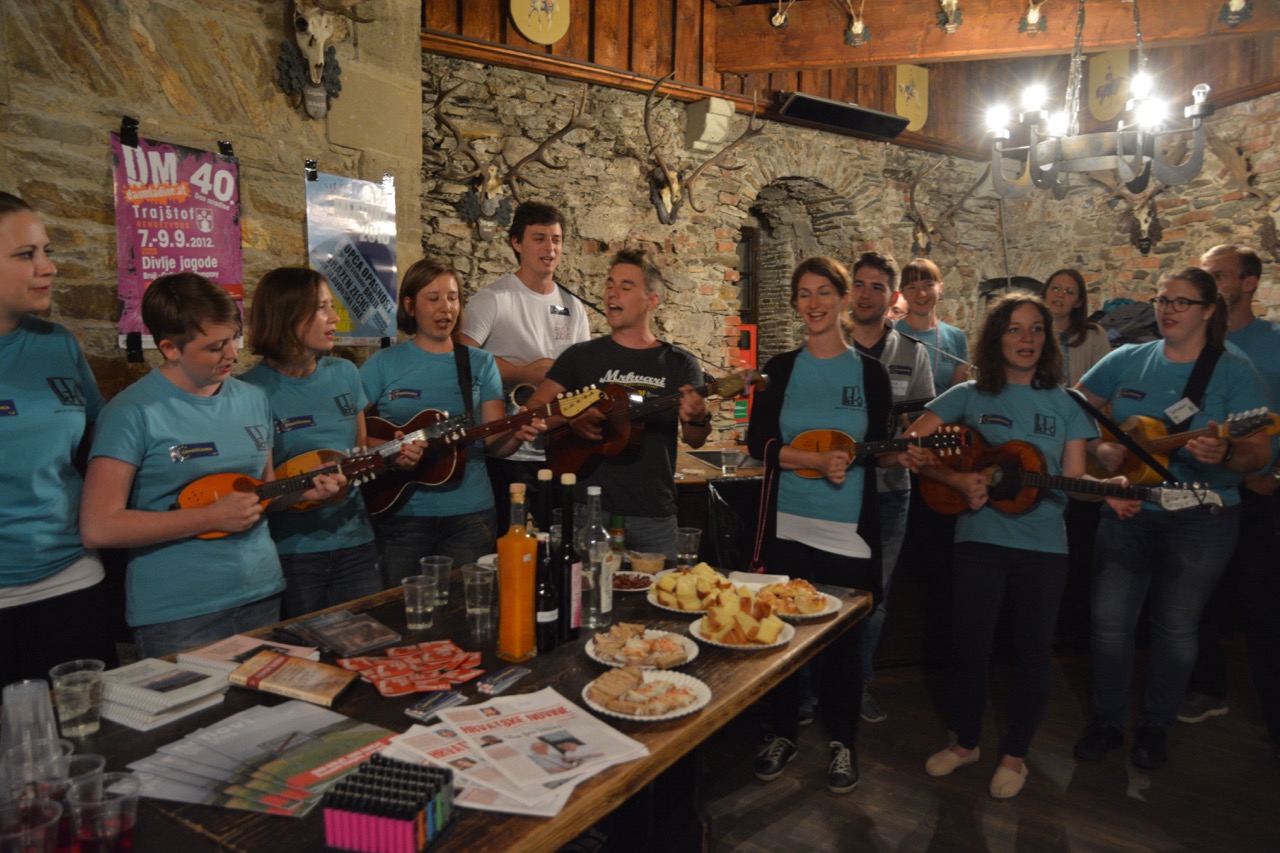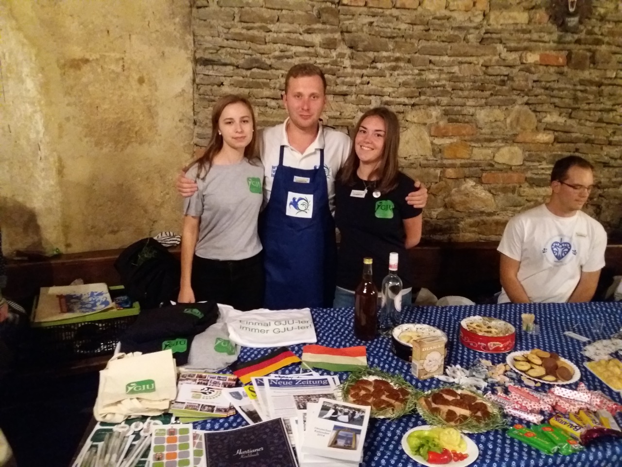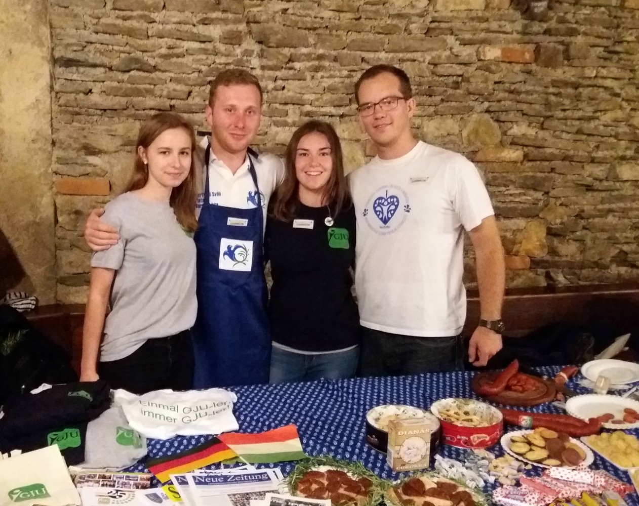 Beeindruckend war die mittelalterliche Ritterburg von Lockenhaus, in der wir untergebracht waren. Das Lieblingsprogramm des Seminars, „das Exchange Market”- bei dem alle Minderheiten ihre eigenen Spezialitäten präsentieren -, fand in einem Rittersaal ebenfalls auf einen perfekten Platz. Diese historische Stimmung ist noch mit eigenem Musizieren der Burgenlandkroaten mit Tanbur gesteigert worden. Natürlich waren wir Ungarndeutsche auch ein Farbfleck dieses Abends, wo u.a. unser Stifolder aus der Branau, und Herzel und Nussschnaps aus Hartian sehr populär waren.