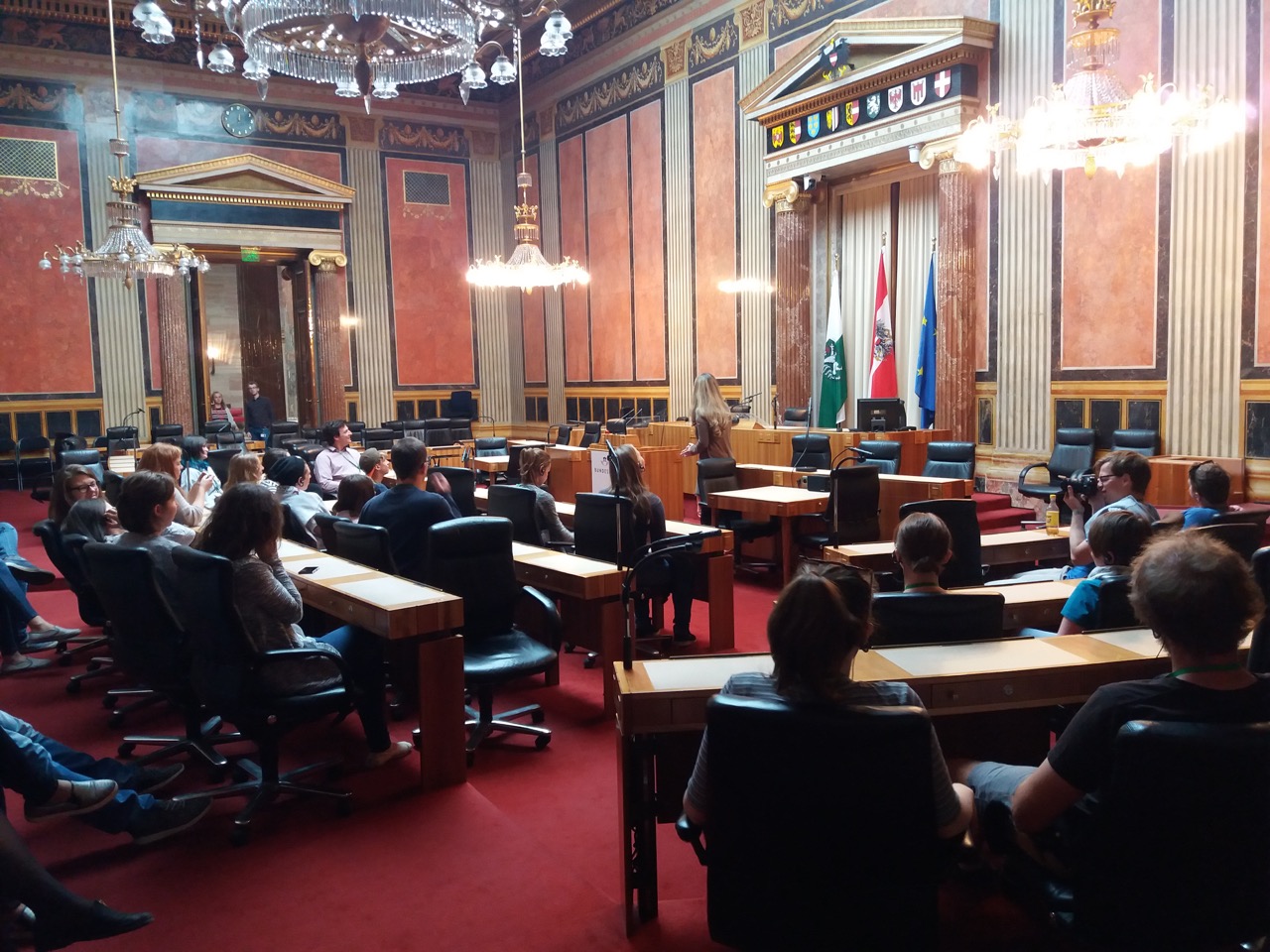 Außerdem machten wir einen Ausflug nach Wien, wo wir nicht einfach das Parlament besuchten, sondern auch mit den Minderheitenbeuftragten der österreichischen Parteien eine Diskussion über die Rechte und über das Bildungswesen der Minderheiten führten. Wir organisierten auch ein „Flashmob“ mit dem Thema „Vielfalt verbindet!“. Wir hatten auch die Möglichkeit in das Leben des slowenischen und kroatischen Klubs hereinzuschauen.
