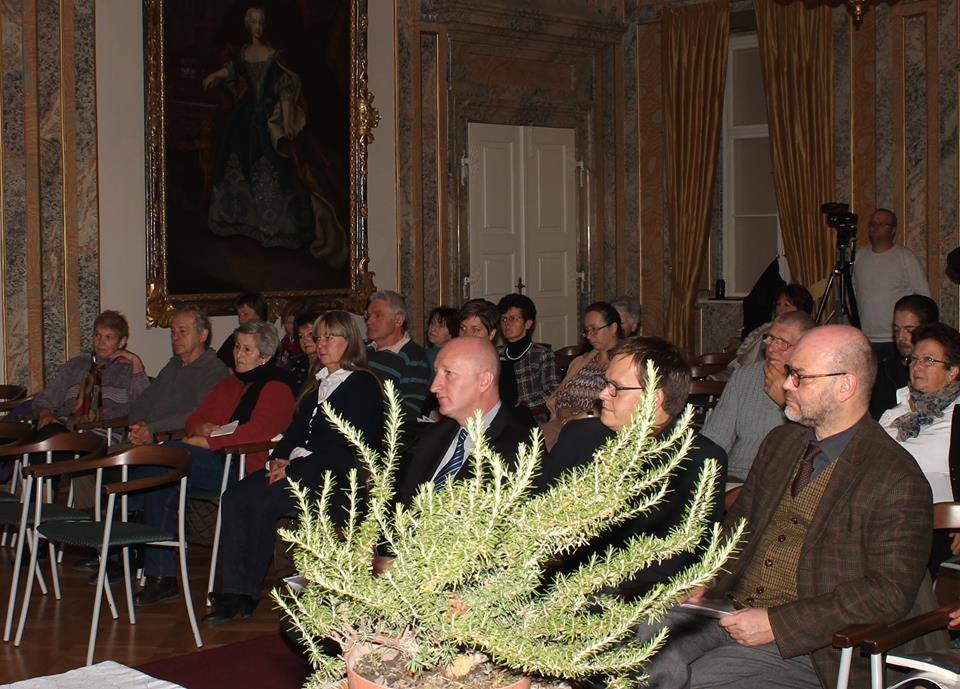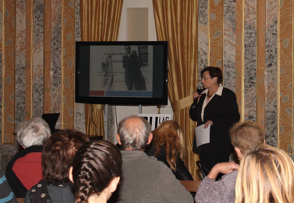 Am Vormittag hielten im Barock-Schloss namhafte Historiker Vorträge über das tragische Schicksal der Ungarndeutschen nach dem zweiten Weltkrieg. Csaba Hajagos, Museologe von Kecskemét, skizzierte auf Grund von Zeitzeugeninterviews bzw. von schriftlichen Quellen die Verschleppungsgeschichte von Hajosch. Gleichzeitig war sein Vortrag die Ankündigung eines Buches über das Schicksal der Hajoscher schwäbischen Bauern 1938-1954, an dem er zusammen mit Zsuzsanna Bereznai und Maria Schön arbeitet. Dr. Eszter Zsófia Tóth schilderte die speziellen und besonders tragischen Züge der Frauenschicksale im GULAG. Dr. Ágnes Tóth, Leiterin des Stiftungslehrstuhls Deutsche Geschichte und Kultur in Fünfkirchen, hielt einen Vortrag mit dem Titel „Integration in der Theorie – Diskrimination in der Praxis. Die Deutschen in Ungarn zwischen 1948 und 1956“. Dr. János Mayer behandelte einige Fragen der Integration der aus der Batschka stammenden schwäbischen Kriegsgefangenen und zur Zwangsarbeit Verschleppten in Westdeutschland. Dr. Michael Prosser-Schell, Professor der Universität Freiburg im Institut für Kulturanthropologie und Europäische Ethnologie und Mitarbeiter des Institutes für Volkskunde der Deutschen des östlichen Europa stellte an einigen Beispielen aus den Materialien und Erhebungen im IVDE Freiburg dar, wie die Internierten versuchten mit Hilfe von gemeinschaftlichen kulturellen und religiösen Aktivitäten Menschen zu bleiben unter unmenschlichen Bedingungen. Die Fragestellungen und Bemerkungen der Anwesenden waren der Beweis dafür, dass es bisher noch nicht gelungen ist, das Thema vollständig aufzuarbeiten.