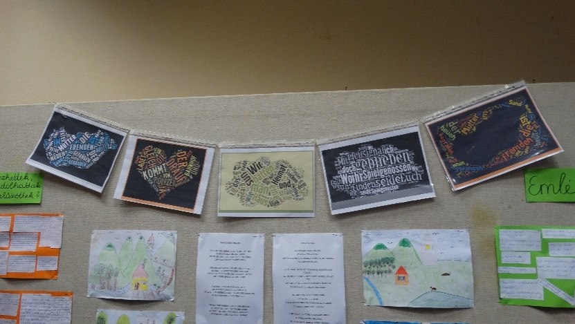 Das Bündel ist am 20. Februar aus Tschatali zu uns gekommen. In der Wanderbündel-Projektwoche haben wir unsere Deutschstunden und Volkskundestunden so organisiert, dass wir uns mit dem Wanderbündel beschäftigen können. Den Inhalt und die Tiefe des Themas haben wir den verschiedenen Altersstufen anpassend bearbeitet. Unsere Ausstellung zeigt die Arbeiten, die wir in den Stunden in der Projektwoche gemacht haben.