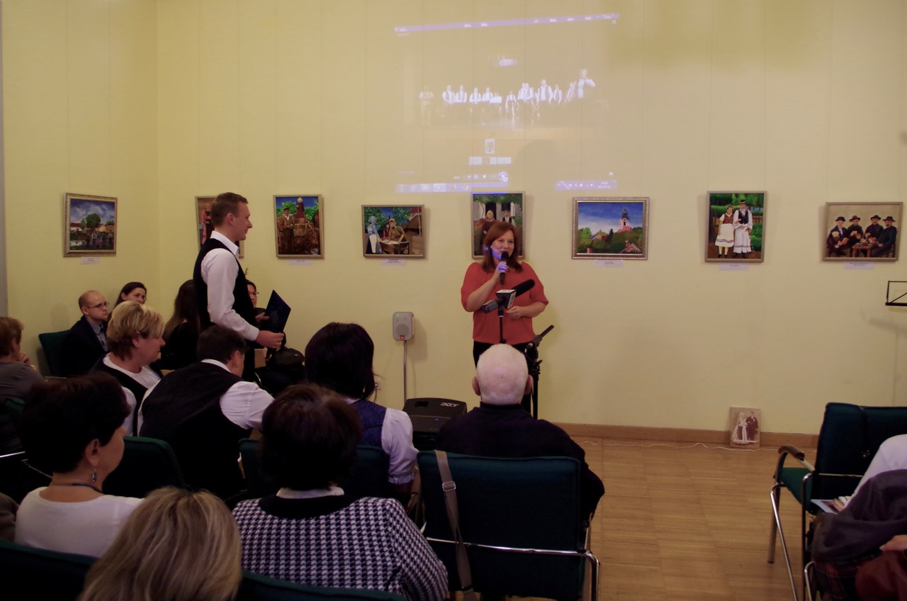 Martin Surman-Majeczki führte das Publikum in die Geschichte Hartians ein: Die Stadt ist einer der ältesten Siedlungen des Komitats, sie existierte schon im Mittelalter. Die Neuzeitliche Geschichte Hartians beginnt am Anfang des 18. Jahrhunderts, als Graf Anton Grassalkovich das Gebiet kaufte. Vor allem wurden Deutsche angesiedelt, die aber nicht direkt aus Deutschland, sondern aus den näheren ungarndeutschen Siedlungen zum Beispiel aus Harast, Taks oder Schorokschar kamen. Also in diesem Fall von Hartian sprechen wir über eine sekundäre Ansiedlung. Die Siedlung entwickelte sich dank dem Fleiß und dem eingebrachten Wissen der Ansiedler rasch: im Jahre 1776 wurde die Sankt Barbara Barockkirche eingeweicht, und im Jahre 1781 wurde die erste Schule gegründet. Die Entwicklung setzte sich bis zum 20. Jahrhundert fort, als die Ungarndeutschen viele Schicksalsschläge erlitten: Hartain konnte die Vertreibung vermeiden, aber 168 Menschen wurden zu „málenkij robot“ transportiert. Erst nach der Wende kam eine Erlösung: seitdem erlebt dort das Ungarndeutschtum seine Renaissance.