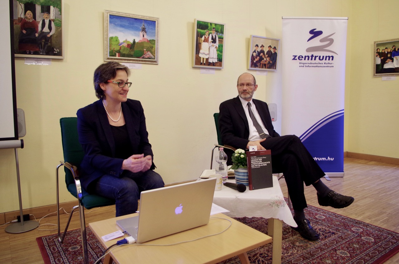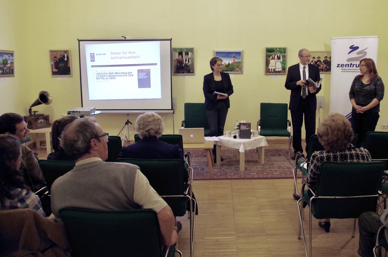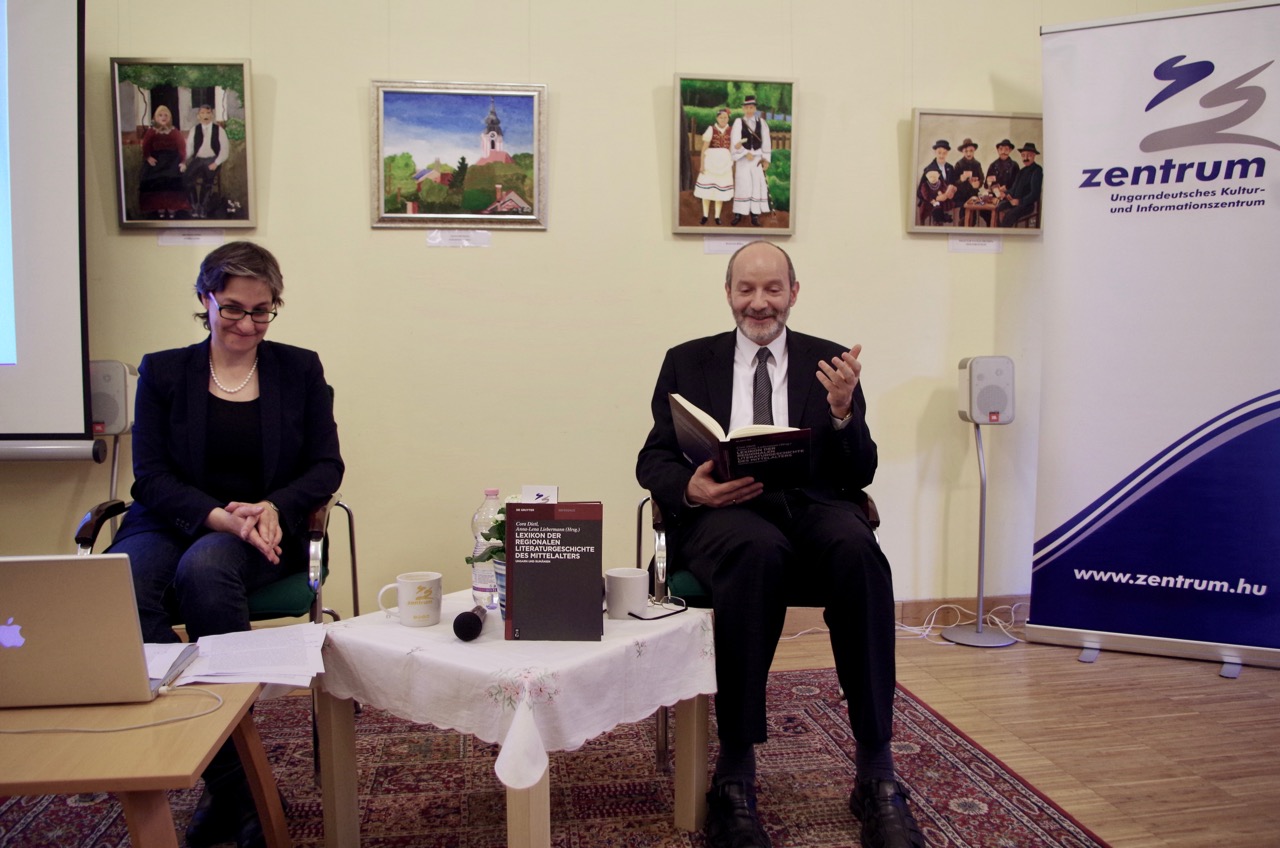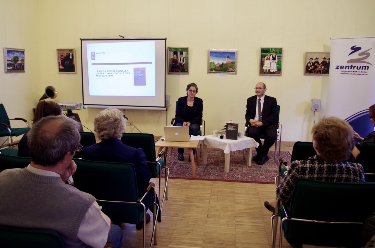Eine zehnjährige harte Arbeit kam mit dem Erscheinen des Buches „Lexikon der regionalen Literaturgeschichte des Mittelalters. Ungarn und Rumänien“ zum Abschluss. Die Publikation stellten Cora Dietl (Justus-Liebig-Universität Gießen), eine der Herausgeberinnen des Lexikons und Mitglied des Teams, das an der Zusammenstellung des Buches gearbeitet hat, und András F. Balogh (ELTE Budapest) am 28. März im Rahmen der Veranstaltungsreihe „Zentrum-Programme im HdU” im Haus der Ungarndeutschen vor.