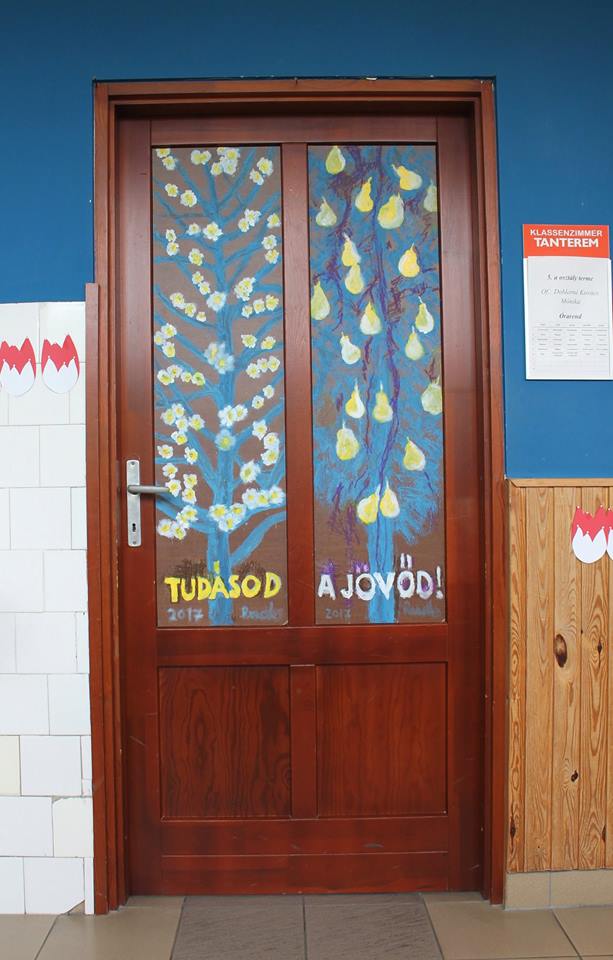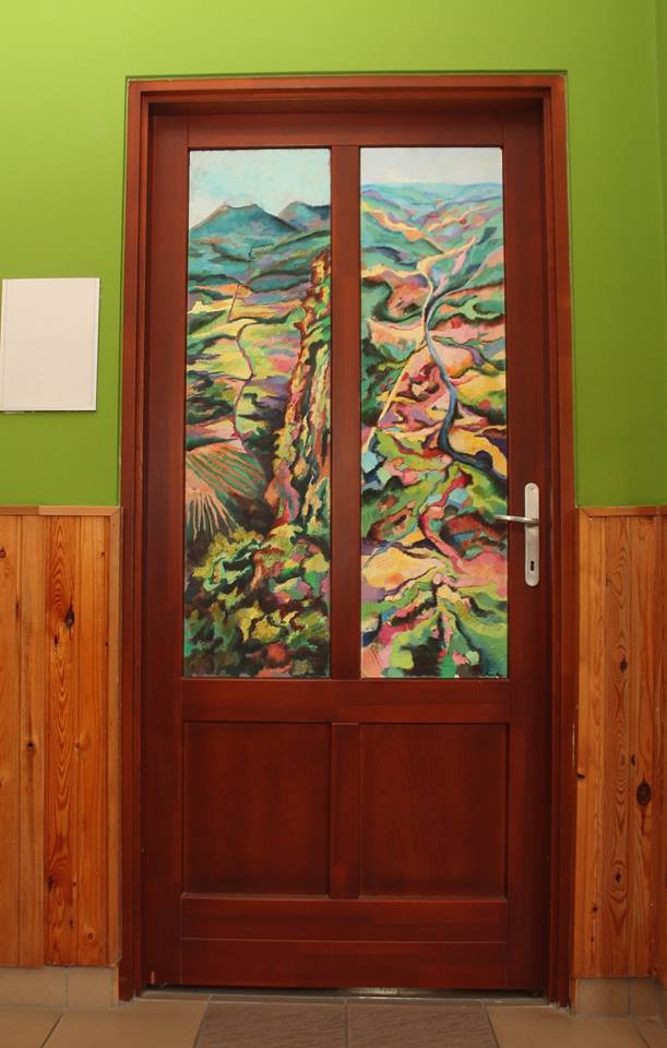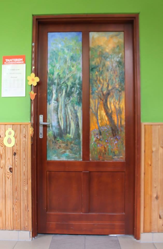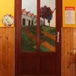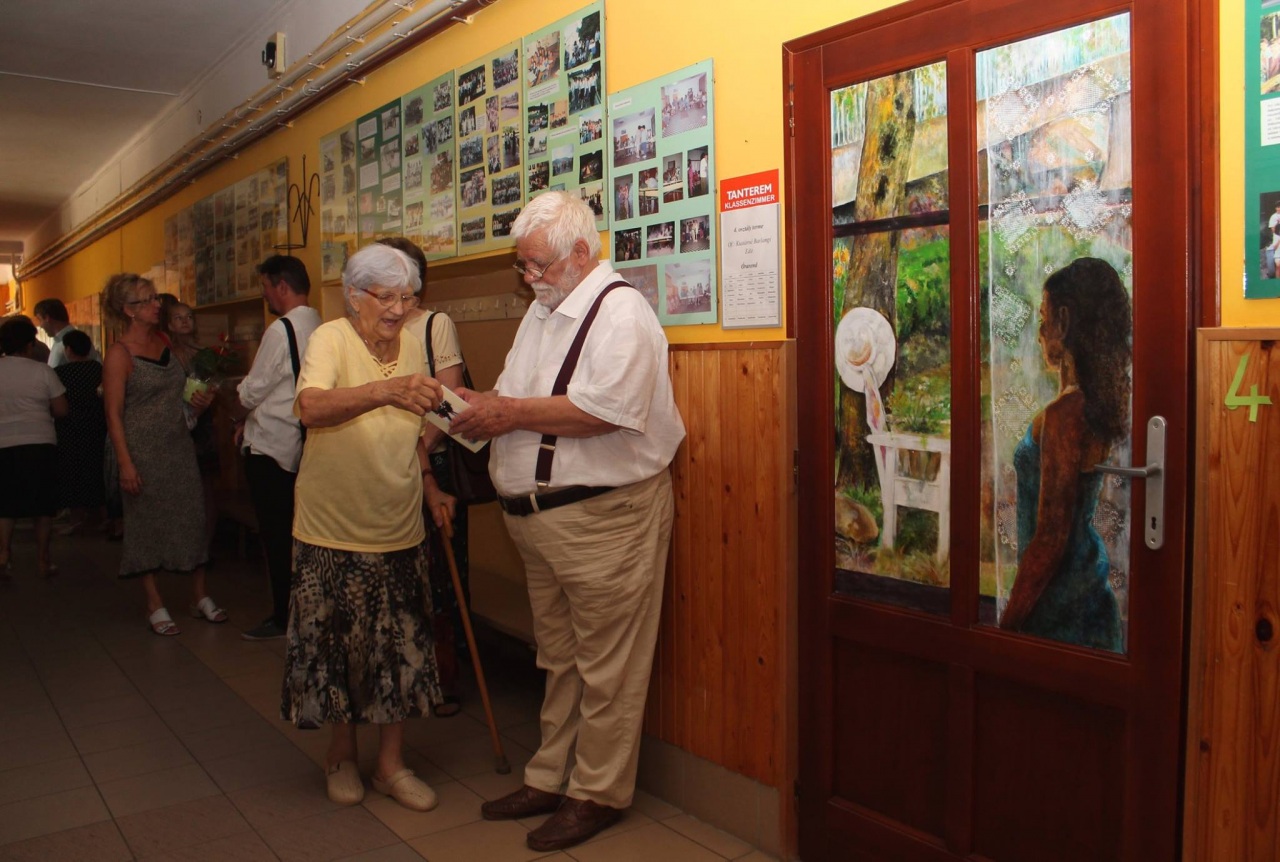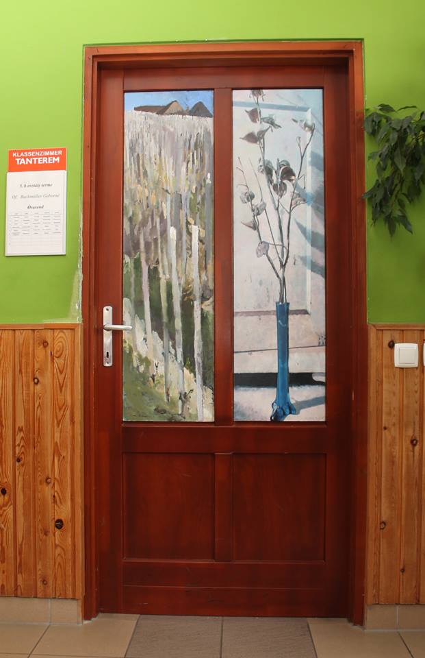 „Ich wäre froh, wenn die Kinder die Räumlichkeiten der Schule schon bald als Mohnblumen-, alte-Damen- oder Landschaftsbild-Raum bezeichnen würden”, meinte Albert Alföldi. Im Initiator und Leiter der Künstlerkolonie hätten immer individuelle, unregelmäßige und besondere Lösungen Spuren hinterlassen, darum habe er mit seinen Künstlerkollegen zusammen die Entscheidung getroffen, zum runden Jubiläum statt einer gewöhnlichen Publikation, oder statt der Einladung von Politikern lieber für die örtliche Gemeinschaft eine bleibende Nachricht zu hinterlassen: „Die konkrete Idee mit den Schultüren brachte Matteo Massagrande aus seiner Heimat mit sich. Der auch international anerkannte italienische Maler unterstützt als Mentor die Arbeit der aus Ungarn und Siebenbürgen nach Hajosch gekommenen Kunstschaffenden. Unser Lager ist übrigens wie eine Werkstatt der Renaissance: ein jeder befasst sich mit einem beliebigen Thema. Auch die Gesellschaft selbst ist sehr bunt, denn unsere jüngsten Mitglieder sind erst 14 Jahre alt, wobei die Älteste Teilnehmende – eine unserer Gründungsmitglieder – bereits 90 ist. All dem zu trotz bilden wir eine tolle Gemeinschaft, die an die einstigen schwäbischen Spinnstuben erinnert, wo von den kleinsten Kindern bis zu den Großeltern mehrere Generationen mit einander ihre Freizeit verbrachten.“