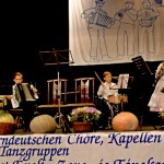 Als Nächstes betrat das Ehepaar Elisabeth und Wilhelm Steinmann (Taath/Uhn) die Bühne und brachte uns Stücke aus dem Heimatort zu Gehör. Von Elisabeth mit Gesang und in der Begleitung auf Knopfharmonika, Mandoline und Mundharmonika von Wilhelm Steinmann wurde uns folgendes Programm präsentiert: „Duart Drunt Bei Der Donau“, „Owa Schau Schau“, „Das Menschliche“ (alle Gesang und Knopfharmonika), „Wenn Die Schwalben“, „Wia Lustig Is Im Winta“ und „Wenn du willst mein…“ (alle mit Gesang und Mandolinenbegleitung), ein Mundharmonikasolo „Ich steh vor Deinem Fenster..“ und wieder mit Gesang und Knopfharmonika „Das Unser Bruada“. Verstärkt im Gesang und in der Präsentation wurden die beiden Elternteile von ihren reizenden sehr jungen Töchtern.