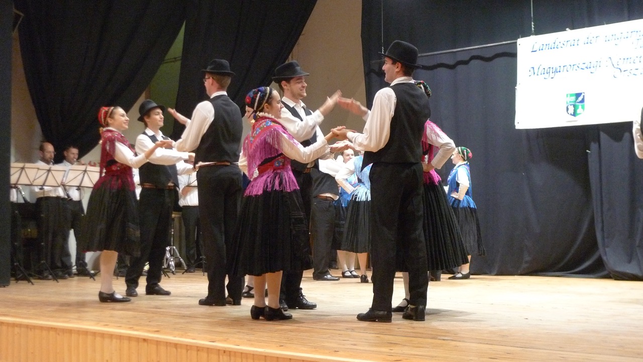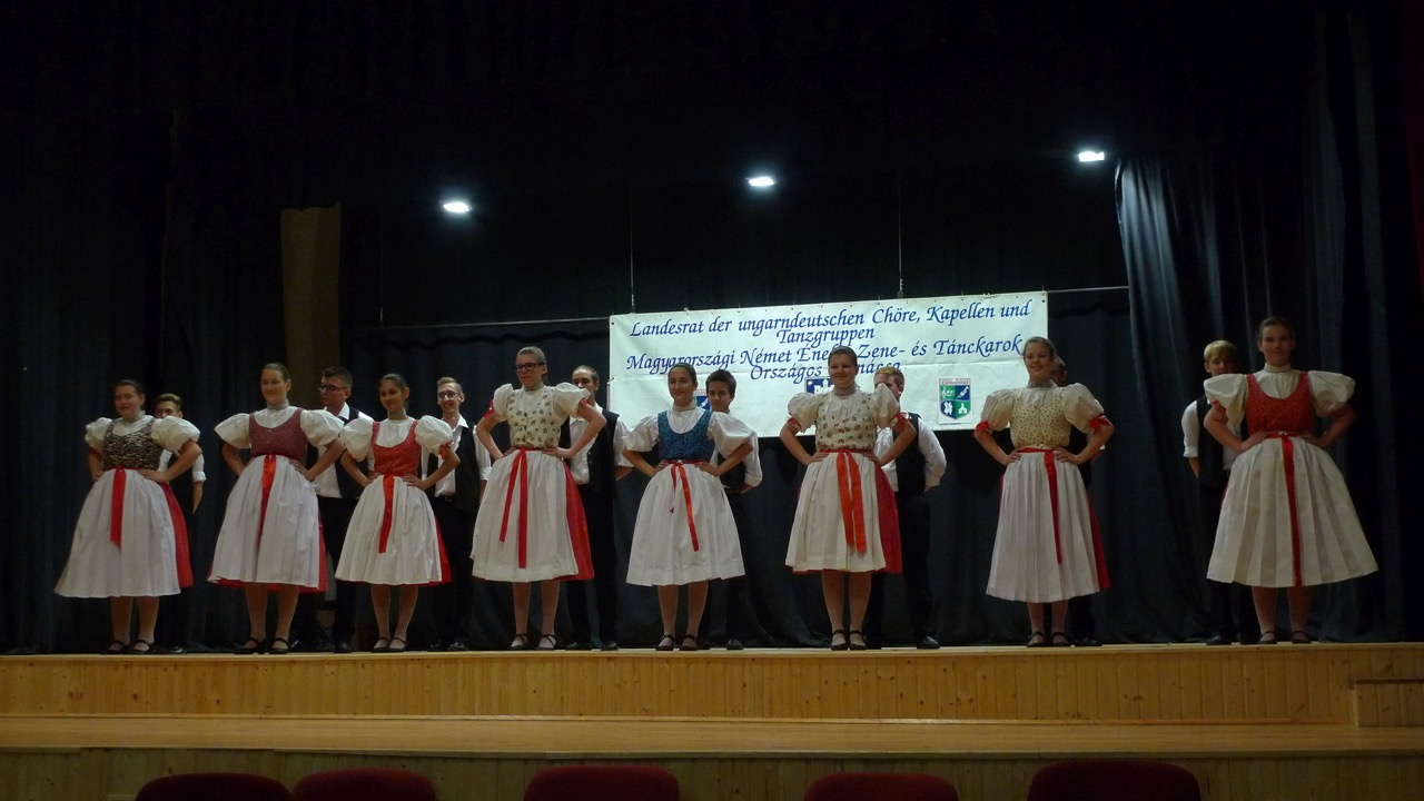 Die Deutsche Nationalitätenjugendtanzgruppe aus Sulk/Szulok unter Leitung von Josef Virth zeigte uns zuerst die Choreographie von Josef Wenczl „Lustige Polka/Vidám Polka“ und eine neue Choreographie in der Kategorie Volkstanz und zwar mit den „Sulker Tänzen/Szuloki Táncok“, Choreographen sind László János Takács und Mihály Kápolnás. Musikalisch wurde die Tanzgruppe von der Kapelle aus Sulk unterstützt.