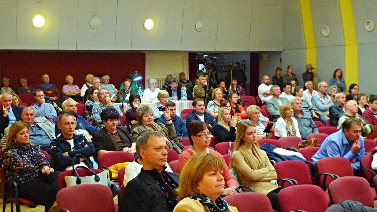 Nach dem Abspielen der Hymnen (gespielt von der Blaskapelle Roger Schilling aus Paks) übernahm nun Manfred Mayrhofer, der Moderator des Tages, das Mikrofon, begrüßte alle Anwesenden im voll besetzten Saal des Kulturhauses und bat Herrn Mihály Baumann, dem Vorsitzenden der DNSV Petschwar,, sein Grußwort zu halten und die Veranstaltung zu eröffnen.