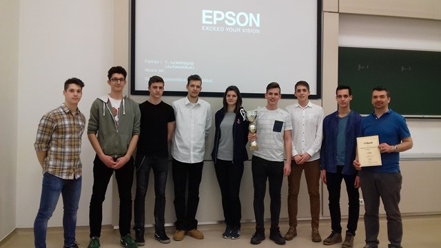 Die Mannschaft der Schule(Marcell Szabó, Brigitta Sziklai, Balázs Gálóczy, Bálint Tóth, Levente Kovács, Máté Kiss, Tamás Koósa, Gergely Potyondi, Zsombor Szük) hat im Finale den 1. Platz erreicht und damit den Pokal gewonnen.