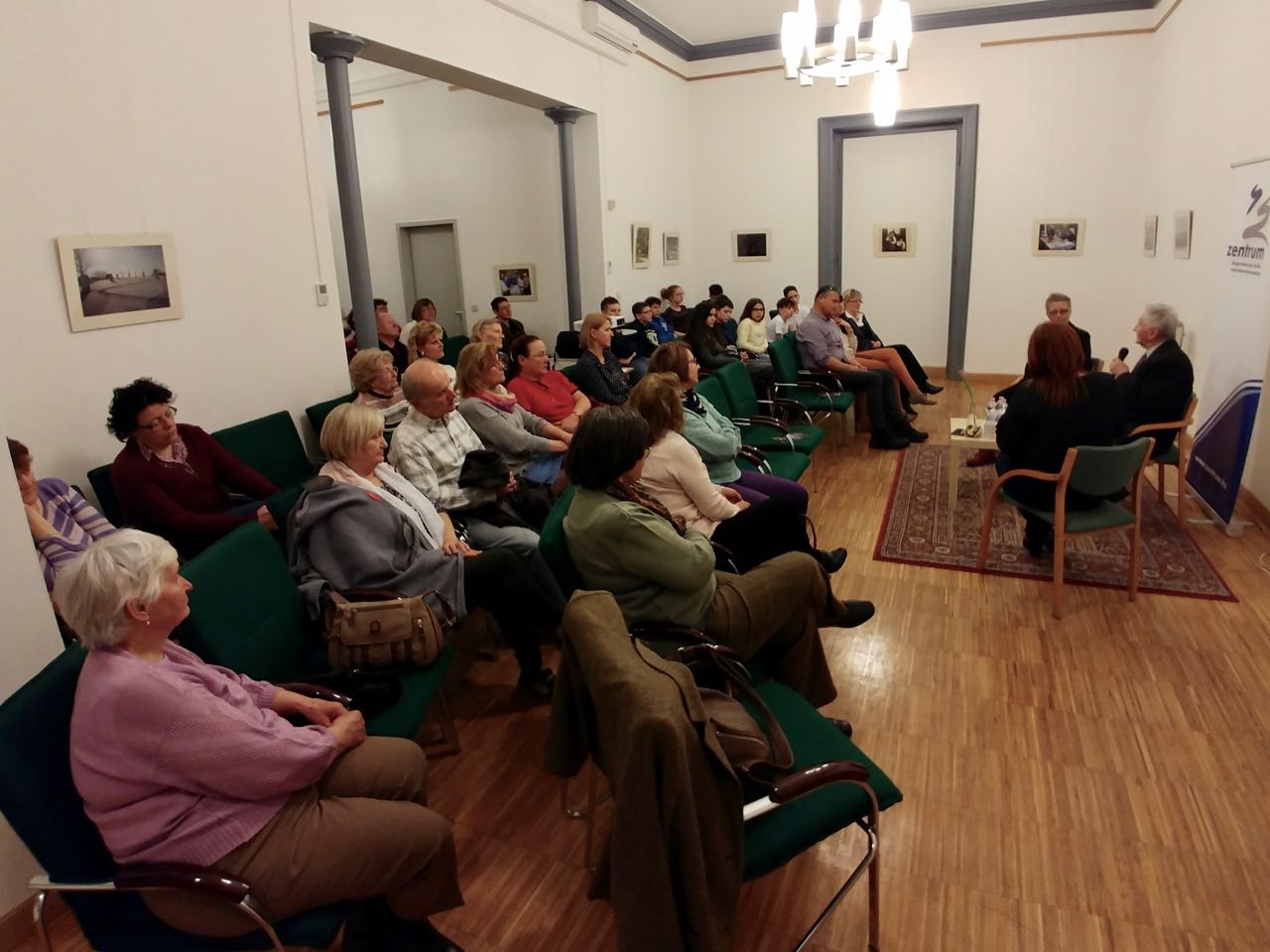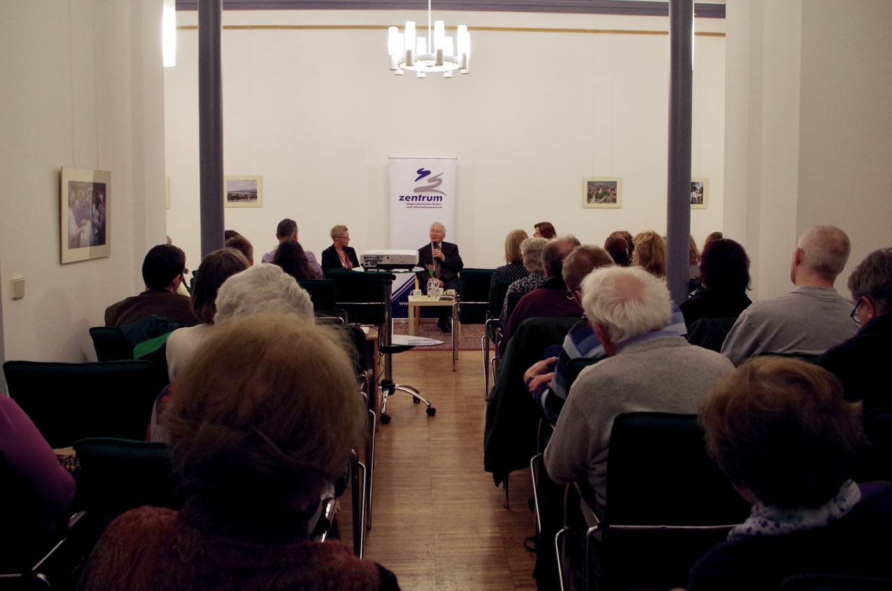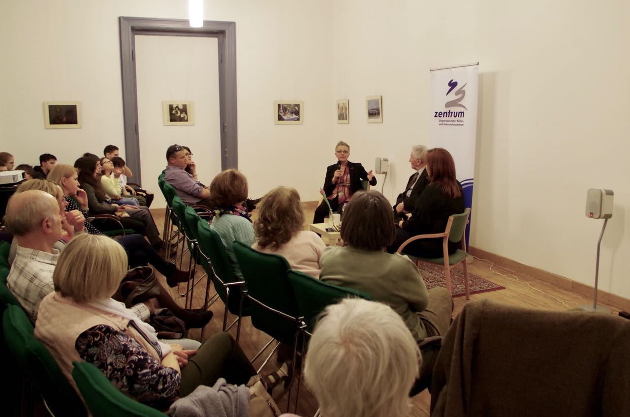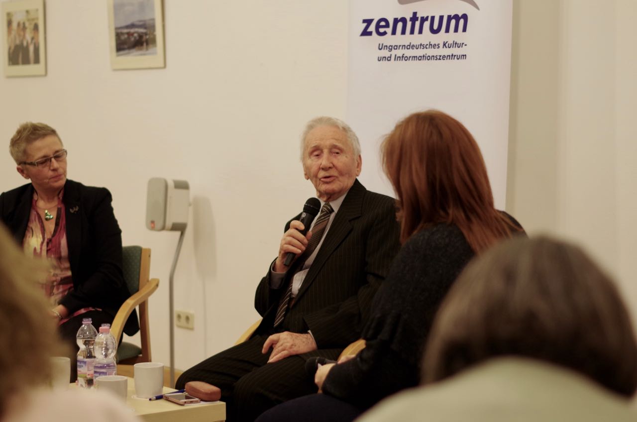 An der Filmvorführung war auch Róbert Berghoffer anwesend. Er war 19 Jahre alt, als er in den Ural nach Baschkirien verschleppt wurde. Später wurde das ganze Lager nach Ureki am Ufer des Schwarzen Meeres umgesiedelt. Mit ihm und mit Ilona Rozsnyai, der Regisseurin und Redakteurin des Filmes, führte Zentrum-Direktorin Monika Ambach ein Gespräch.