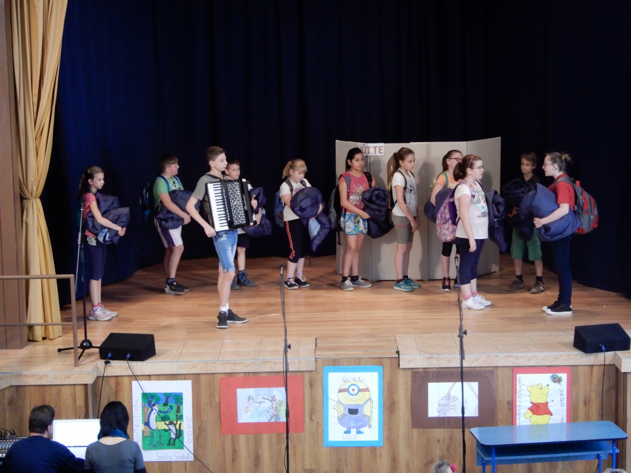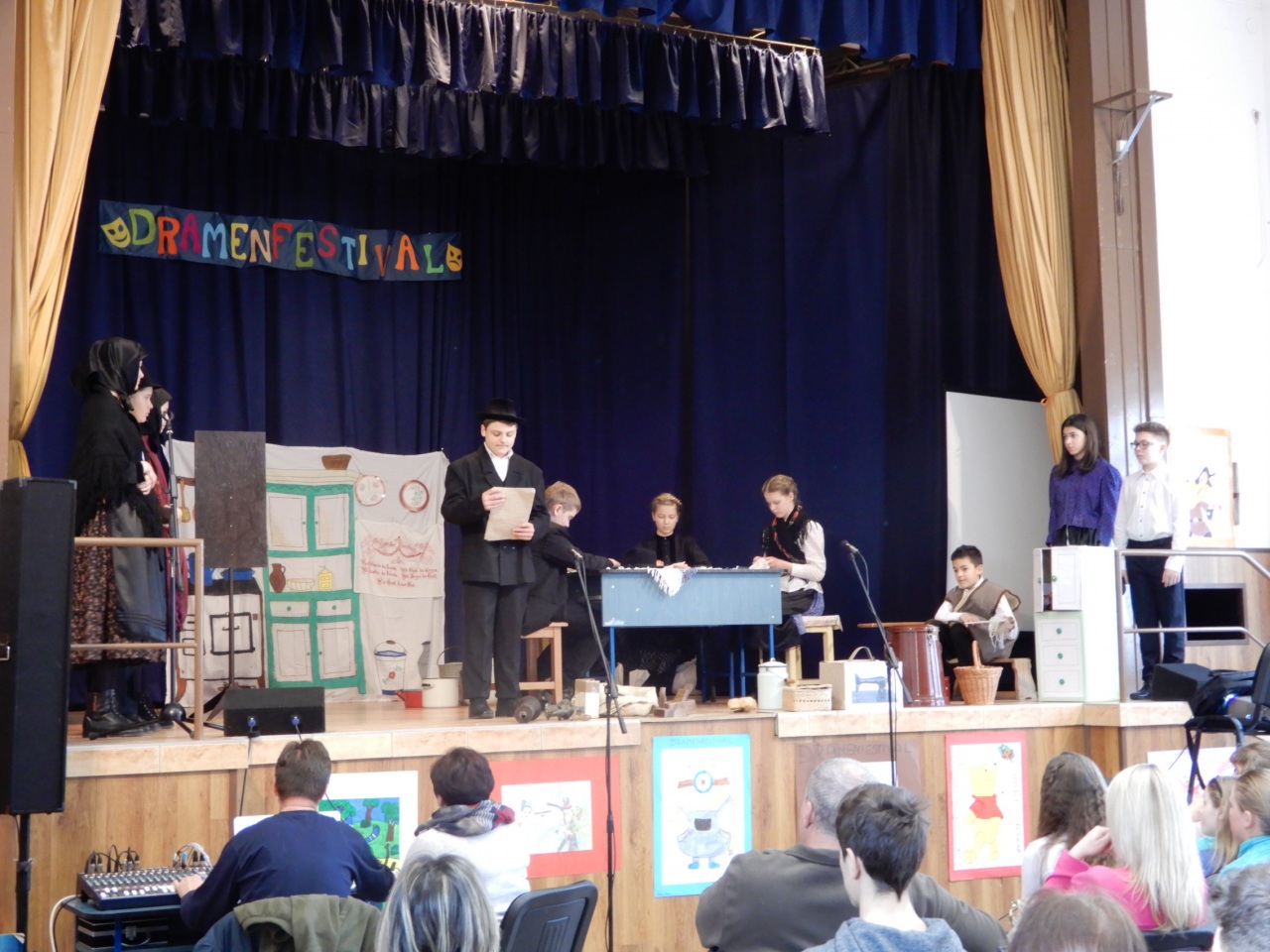 Am 27. März versammelten sich mehr als 150 junge SchauspielerInnen in Ugod (Komitat Wesprim). Schon früh am Morgen war das Kulturhaus von aufgeregten Kinderstimmen laut: die verkleideten Engel, Wölfe, Ameisen und Geißleinen warteten auf ihren Auftritt. In diesem Jahr nahmen 12 Theatergruppen aus 11 Schulen am traditionellen Dramenfestival teil (10 Gruppen aus Komitat Wesprim und 2 Gruppen aus Budapest).