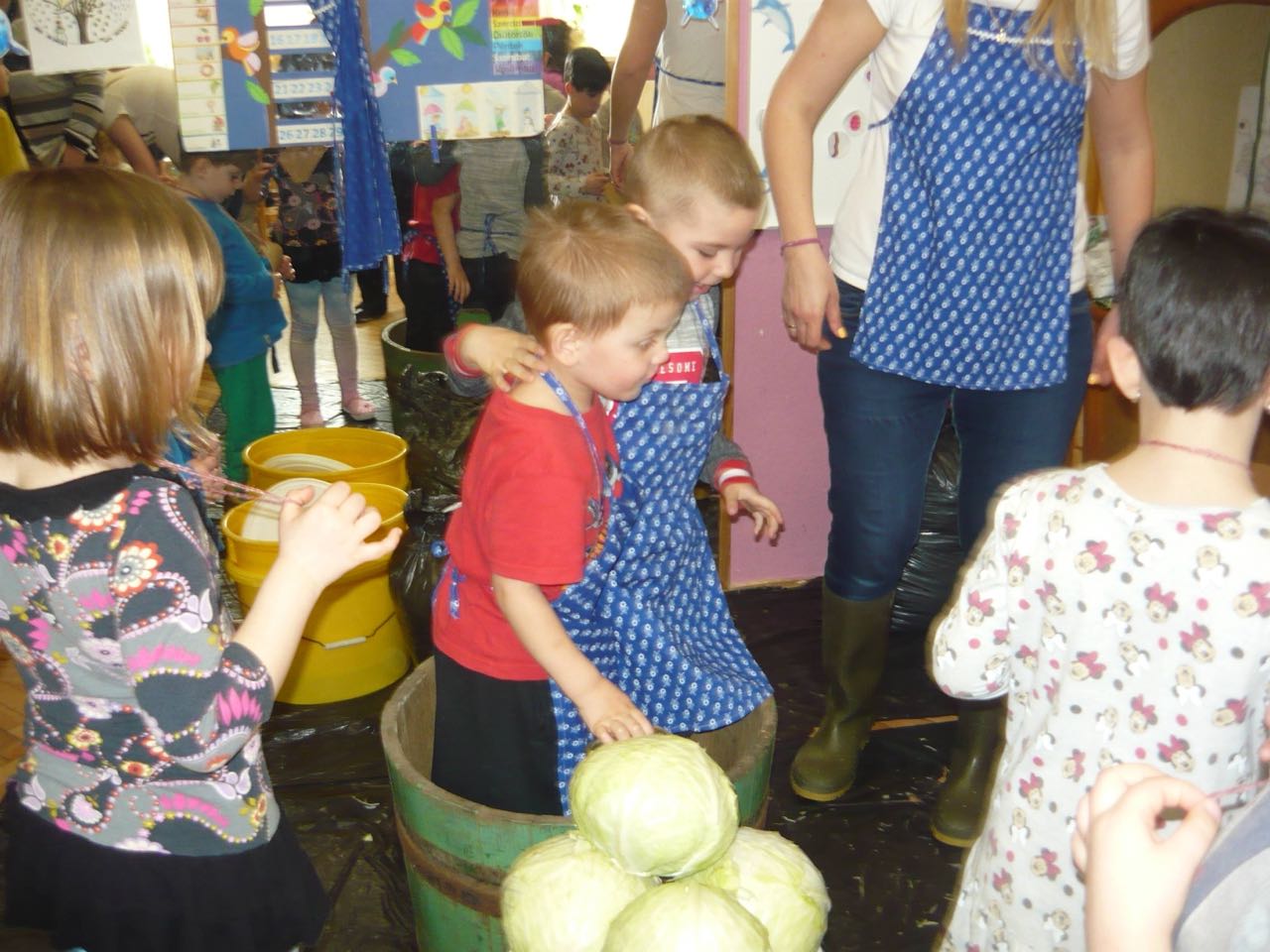 Alte Meister wurden eingeladen, die von ihrem Beruf, von den Mitteln und dem Zubehör erzählt und gemeinsam mit den Kindern gearbeitet haben. An einem Tag haben die Gruppen die Familie Mérai besucht und zugeschaut, wie das berühmte Sauerkraut hergestellt wird. Sie haben die Geräte in Betrieb gesehen und leckeres Sauerkraut gegessen.