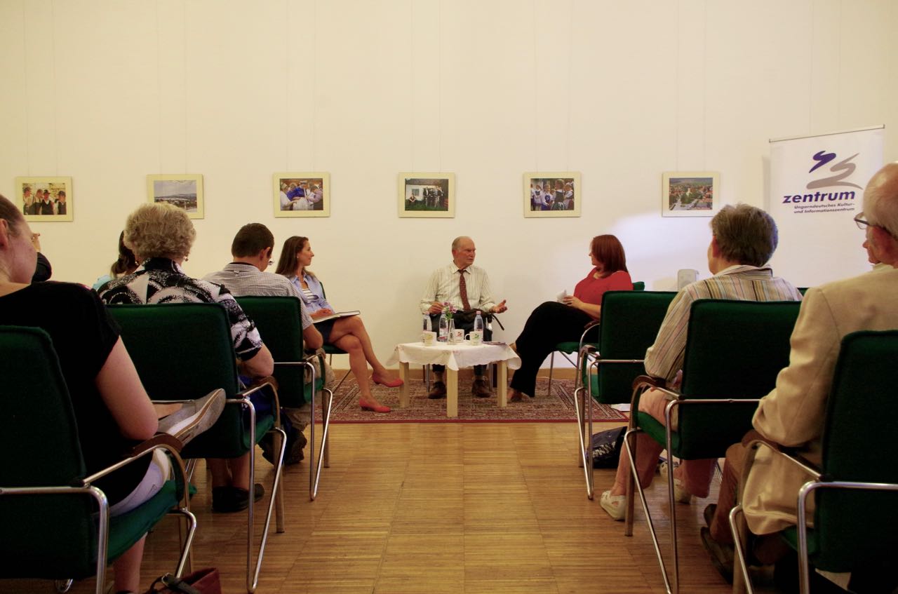 Gast war am 9. Mai auch Dr. Kathi Gajdos-Frank, die Direktorin des Jakob Bleyer Heimatmuseums in Wudersch (Budaörs), die anschließend zu Mathias Schmaussers Kindheitserlebnisse und Erfahrungen über die Vertreibung auch über die Passionsspiele sprach.
