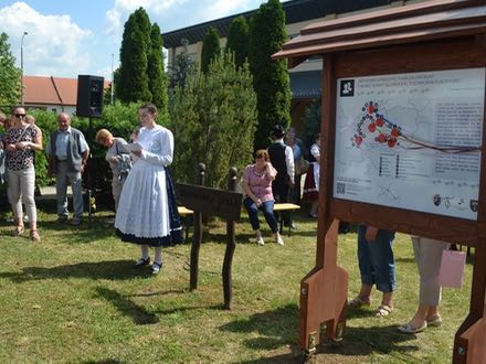 Begeht man den thematischen Weg, wird man um spannenden Geschichten und Informationen über die örtlichen und kleinregionalen Besonderheiten der Ungarndeutschen reicher: man bekommt zum Beispiel zu wissen, was Tarian mit dem Schwarzwald verbindet, wie schlau die Bewohner früher ihr Getreide versteckt hatten, dass Elvira und Isabella hier in erster Linie nicht Frauenvornamen sind, oder was eine verstaubte Kiste auf einem Dachboden mit dem Tarianer Musikleben zu tun hat – erklärte in ihrer Rede Dr. Maria Erb, Dozentin des Germanistischen Instituts der Eötvös-Loránd-Universität, Leiterin des Ungarndeutschen Forschungszentrums. Als Wissenschaftlerin und als Privatperson ist sie mit Tarian seit 25 Jahren eng verbunden, und sie beteiligte sich an der Schaffung des Lehrpfades als Expertin: „Der Lehrpfad soll euch, Tarianern Halt geben, seid stolz darauf, was eure Vorfahren – immerhin fast zehn Generationen – in beinahe 300 Jahren hier geschaffen haben! Und er soll auch Ansporn sein, soll euch eure Verantwortung bewusstmachen, das Ererbte in Ehren zu halten, Sprache und Kultur zu bewahren und an die nächsten Generationen weiterzureichen.“