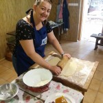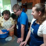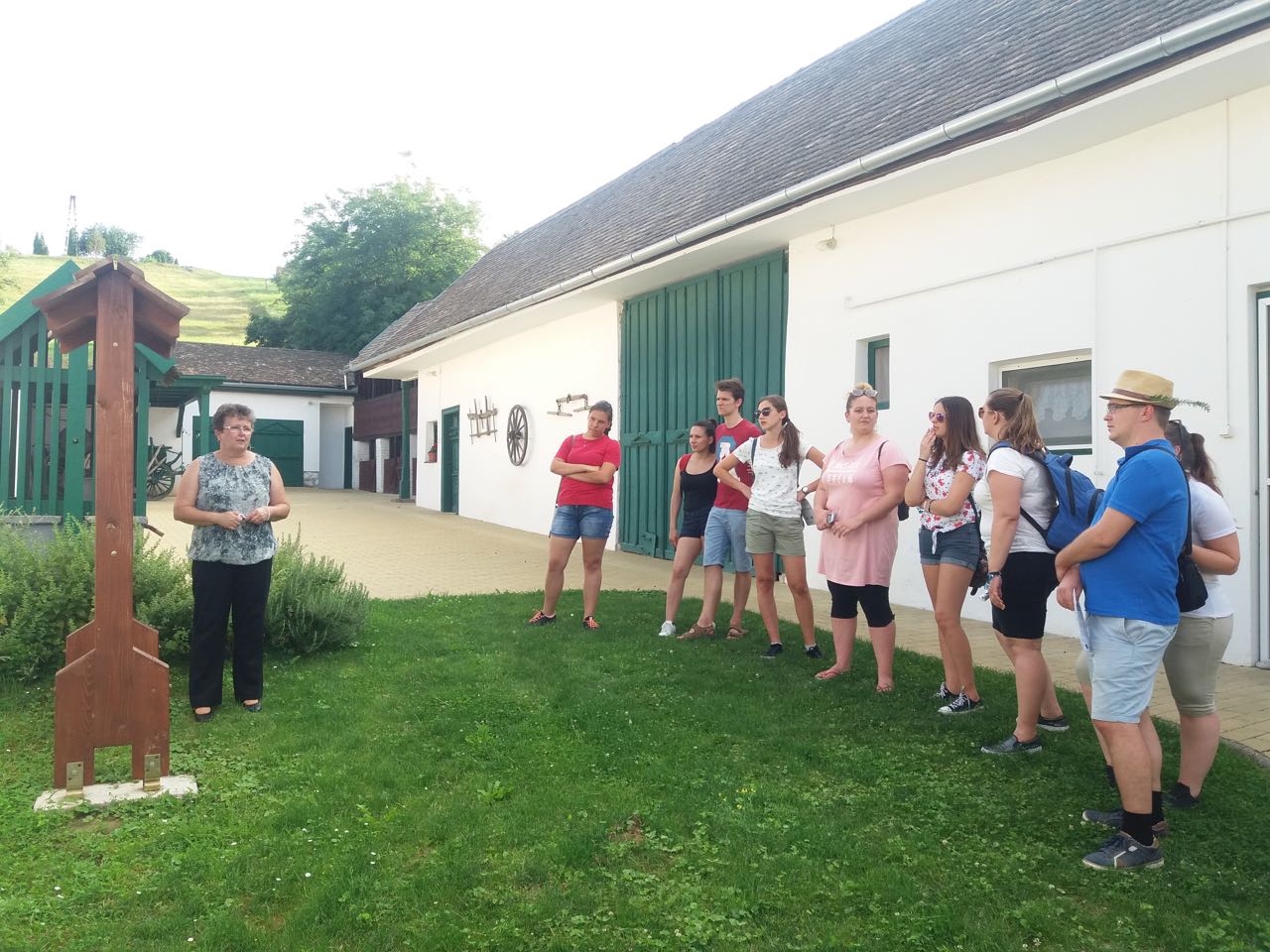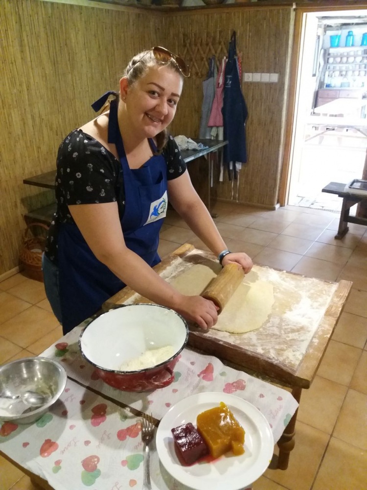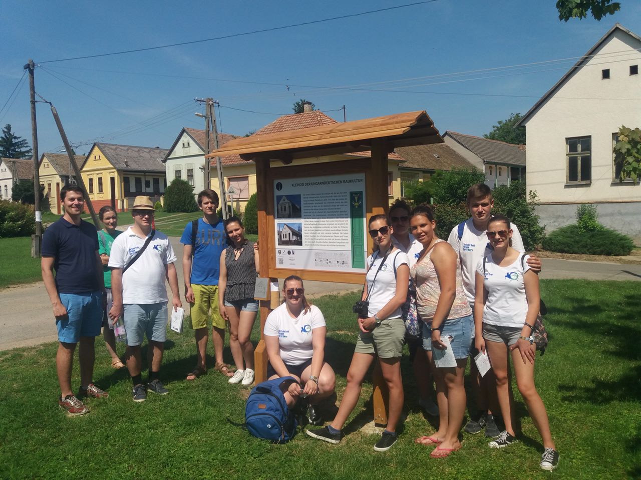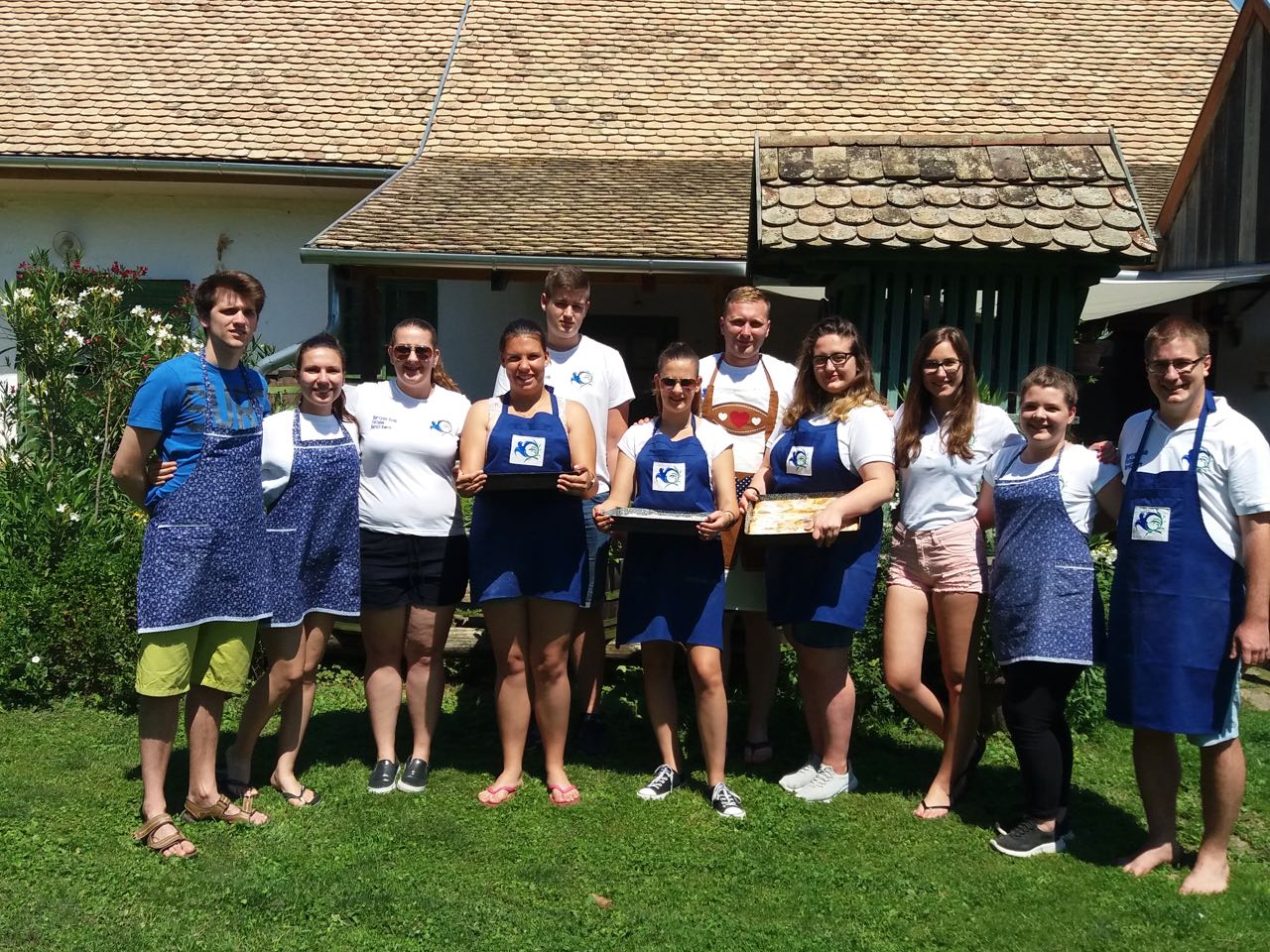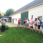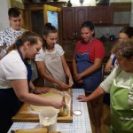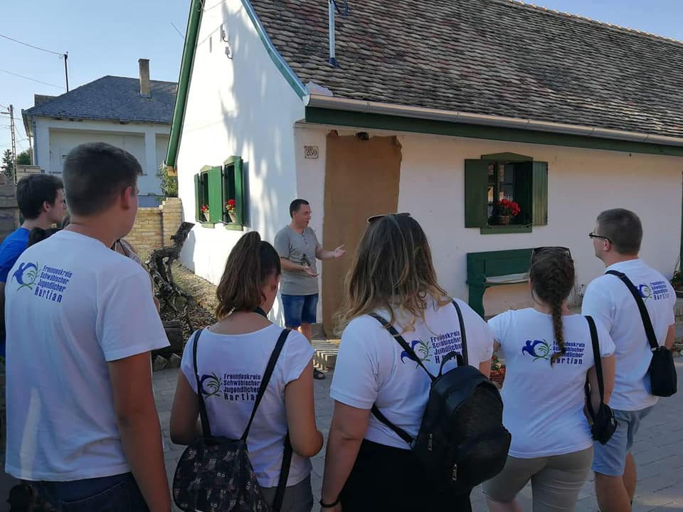Wie gesagt, das diesjährige Backcamp war nicht nur ein gastronomisches Camp, sondern auch eine Art von Volkskundecamp und Teamweiterbildung. Der Teamgeist wurde zum Beispiel mit einer speziellen „Überlebenstour“ mit vielfältigen Aufgaben zum Thema Ungarndeutschtum gefördert. Nachmittags besuchten wir die ungarndeutschen Ortschaften in der Nähe. Zuerst stellte uns István Markesz Litowr vor. In Schomberg beschritten wir in der Begleitung von Frau Katalin Berek einen der ersten ungarndeutschen Lehrpfade. In Fünfkirchen erzählte uns ifa-Kulturmanagerin Sandra György über die Tätigkeit des Lenau-Hauses. Natürlich durfte der nagelneue und sehr interaktive Fekeder Lehrpfad aus unserem Programm nicht fehlen, diese neue Sehenswürdigkeit zeigte uns Frau Réka Peck. Danach trafen wir uns in Bawaz mit dem Tóth-Kresz Duo. Vivi und Toni empfingen uns besonders herzlich im Schwabenhof. Nach der Besichtigung des schön renovierten Kolonistenhauses lehrten sie uns typische Bawazer Tänze und ungarndeutsche Volkslieder. Am letzten Tag vor der Heimreise besuchten wir noch Ofala und Altglashütte. In Ofala führten wir mit Bürgermeisterin Elisabeth Bechli ein Rundtischgespräch über die Bewahrung der Ofalaer Mundart.