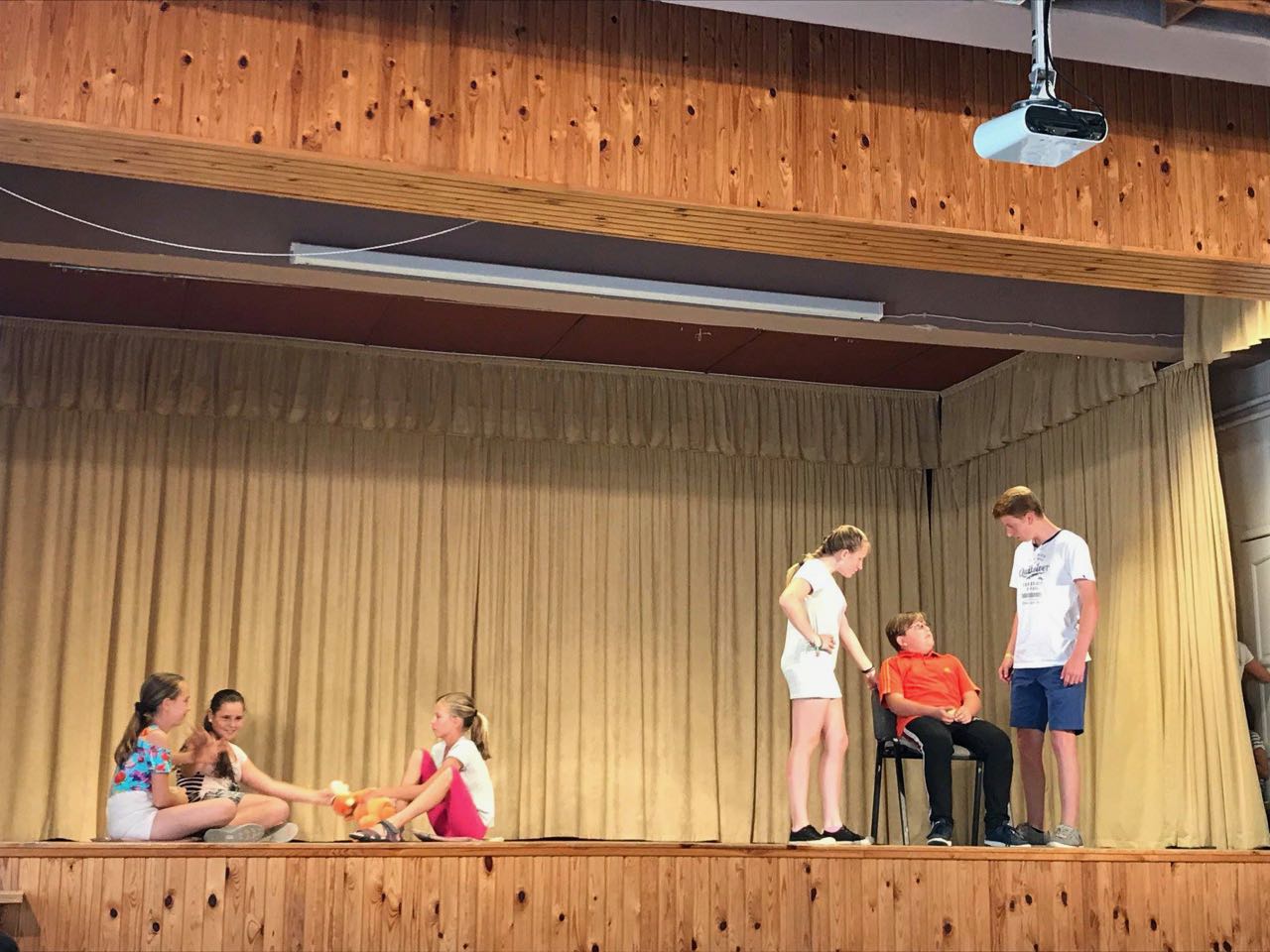 Jeden Vormittag von 9 bis 12 Uhr und am Nachmittag von 15 bis 18 Uhr hatten die Kinder Workshops, in denen die Lehrerinnen mit den Kindern verschiedene theaterpädagogische Übungen und Spiele durchgeführt haben. Diese dienten zur Konzentration auf der Bühne und zur Aufmerksamkeit aufeinander. Während der Woche haben sich die Kinder in drei Gruppen auf die Theateraufführung am Samstag vorbereitet. Trotz der Hitze übten sie motiviert ihre Stücke und setzten sich voll ein. Jeder übernahm die Verantwortung für seine Rolle, lernte seinen Text und gab sich die größte Mühe – so wurde das Theaterstück ein großer Erfolg.