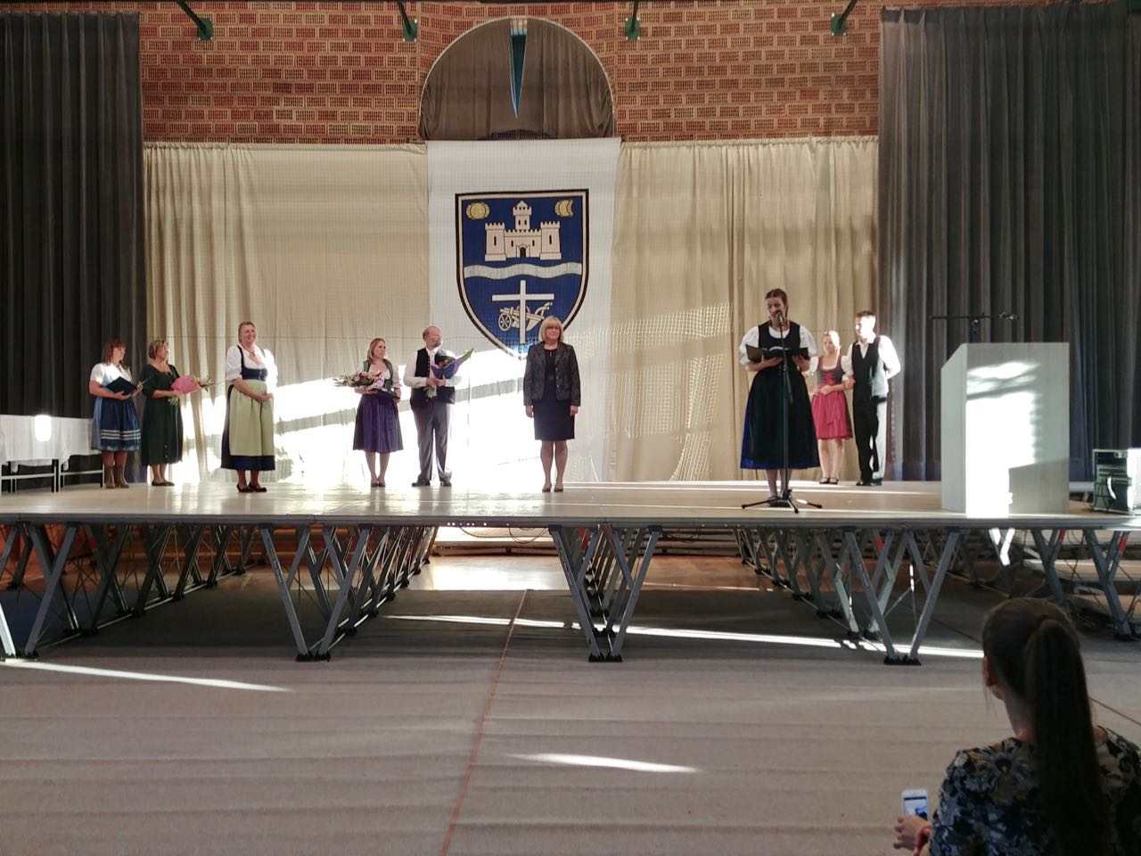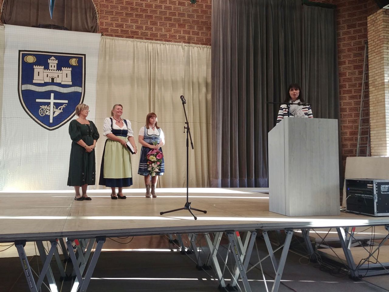Nach dem Grußwort von Judit Bárkányi, der Vorsitzenden der Deutschen Selbstverwaltung Budapest, hielt Olivia Schubert, die Vorsitzende der Landesselbstverwaltung der Ungarndeutschen, die Festrede. Sie erinnerte daran, wie wichtig für ihren Vorgänger, Otto Heinek, gewesen sei, dass die Landesselbstverwaltung auch in Budapest die Trägerin eines eigenen Gymnasiums ist. Die LdU befürworte, dass den SchülerInnen ein Umfeld angeboten wird, wo deutsche Traditionen und ungarndeutsches Leben lebendig gemacht werden, wo man das Gefühl hat, zu Hause zu sein. Diese seien die Leitgedanken nicht nur der von der LdU getragenen Schulen, sondern auch jener Bildungseinrichtungen, in denen Nationalitätenunterricht angeboten wird. Sie meinte, dieses Umfeld gebe einen starken Hintergrund, starke Wurzeln, auf die man bauen könne. „Wenn wir Wurzeln haben, können wir auch Flügel geben”, wies sie auf das LdU-Leitbild des ungarndeutschen Bildungswesens Wurzeln und Flügel hin.