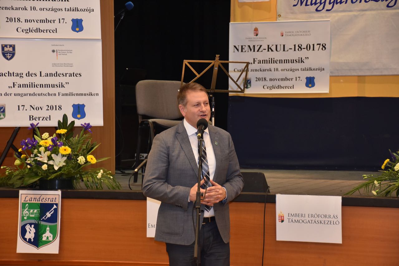 Anschließend verlegte sich das Geschehen in das Kulturhaus von Berzel, wo dann das Musikprogramm mit dem Abspielen der beiden Hymnen begann. Die offiziellen Grußworte sprachen Bürgermeister Josef Török, der auch der Schirmherr der Veranstaltung war, und der Vorsitzende der örtlichen DNSV Peter Polónyi. Die offizielle Eröffnung des Festes wurde vom Landesrat-Vorsitzenden László Kreisz übernommen. Nun begann das musikalische Programm in der gemischtsprachlichen Moderation von Henriette Schmidt.