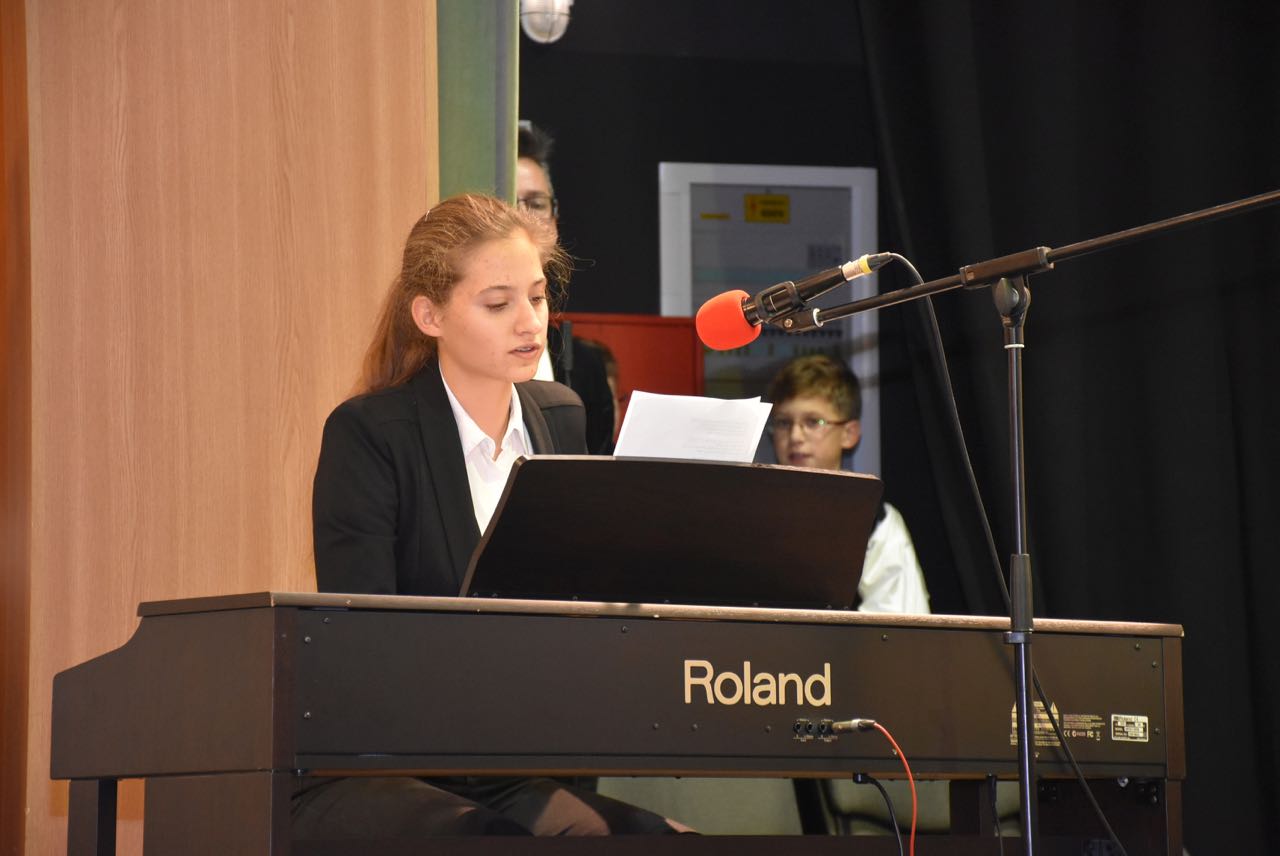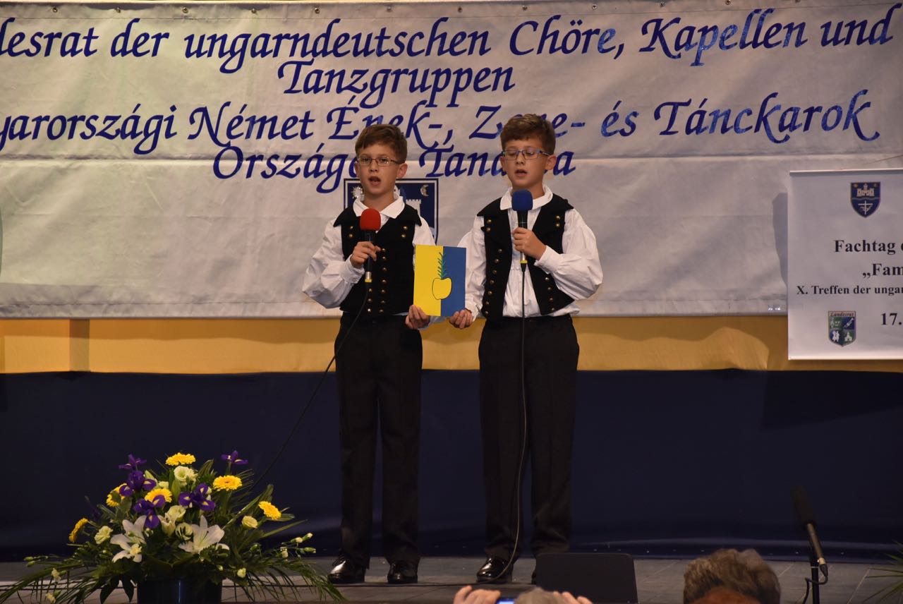Die Familie Sasvári aus Berzel war die nächste, Familie die uns ihr Programm darbrachte. Trotz eines tragischen Verlustes innerhalb der Familie waren die jungen Auftretenden mit vollem Ernst im Programm dabei. Die Zwillinge András und Bálint sind neun Jahre alt, seit vier Jahren machen sie Musik. Sie sangen uns die Volkslieder „Weißt du, wieviel Sternlein stehen“, „Edelweiß“ und „Die Vöglein im Walde“. Die Schwester Angelika ist 14 Jahre alt. Seit zehn Jahren spielt sie Klavier. Ihr Beitrag war ein modernes Stück auf Klavier und gesungen „So schön kaputt“ von SDP.