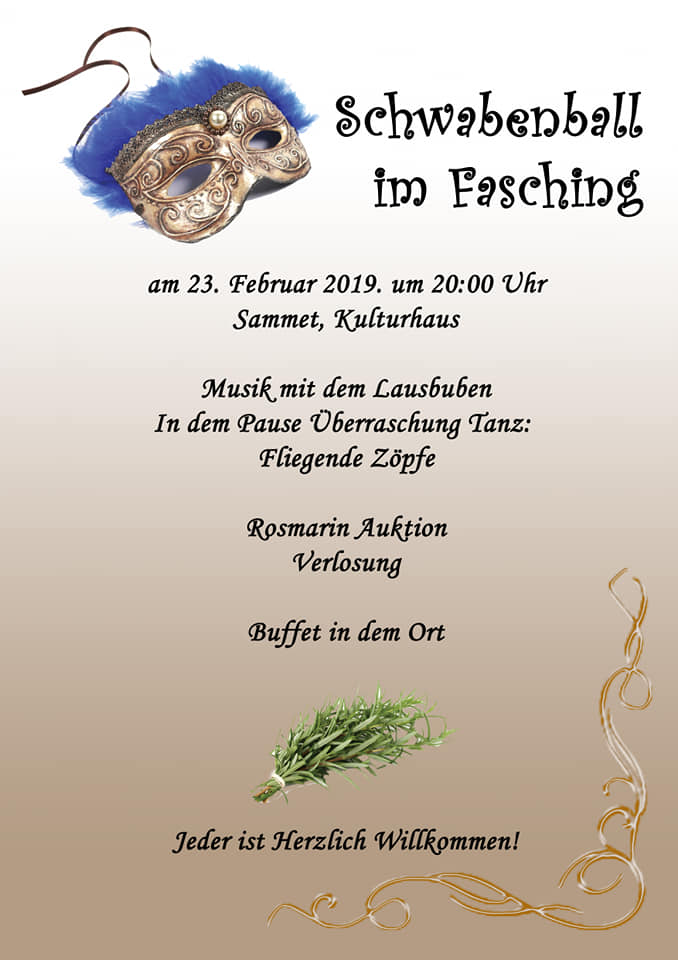 Schwabenball am 2. März im Veranstaltungshaus in Berkina mit der Eber Kapelle aus Maan.