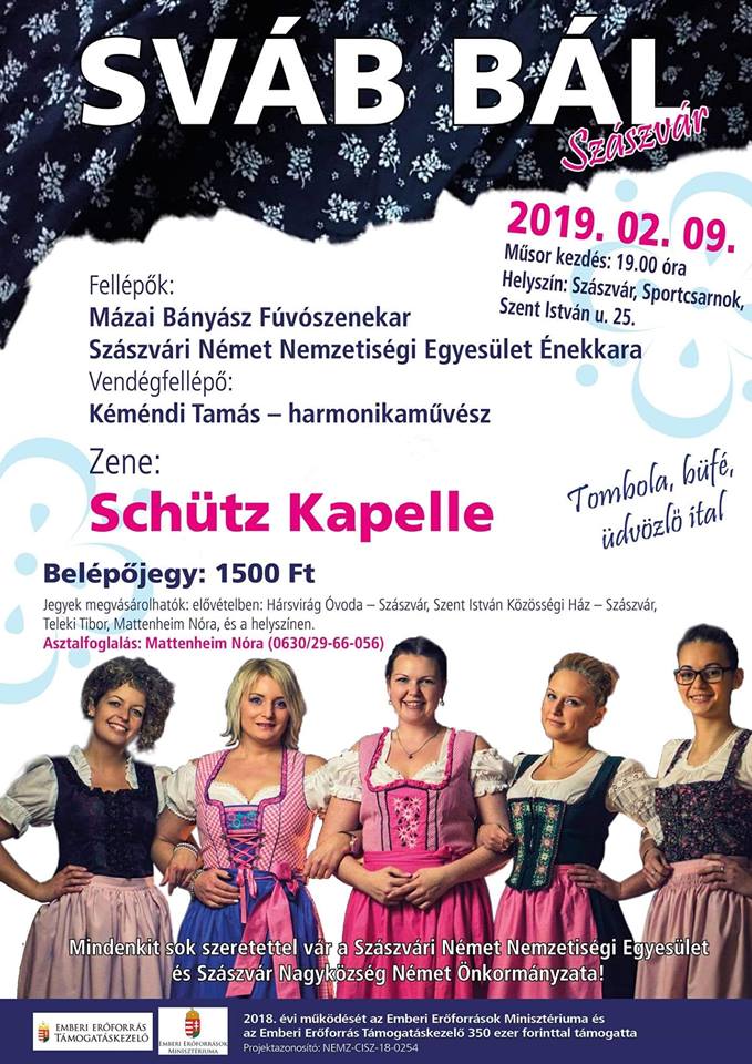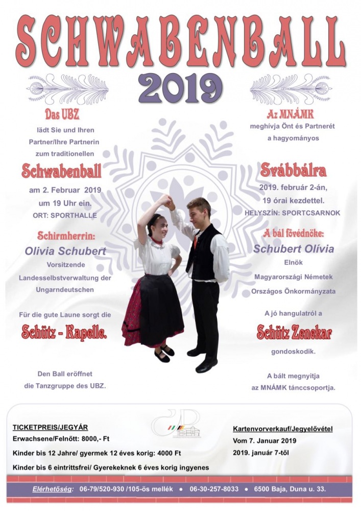 Der Schwabenball des Ungarndeutschen Bildungszentrums Baje findet am 2. Februar statt. Den Ball wird die Tanzgruppe des UBZ eröffnen, für die gute Stimmung wird die Schütz Kapelle sorgen.