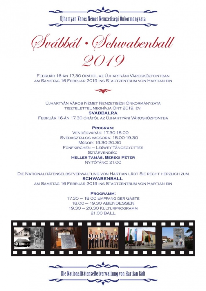 Die Deutsche Selbstverwaltung Neupesth lädt alle Interessenten zum Schwabenball am 16. Februar 2019 um 17 Uhr im Bürgerzentrum (1043 Budapest, Árpád út 66.) ein.