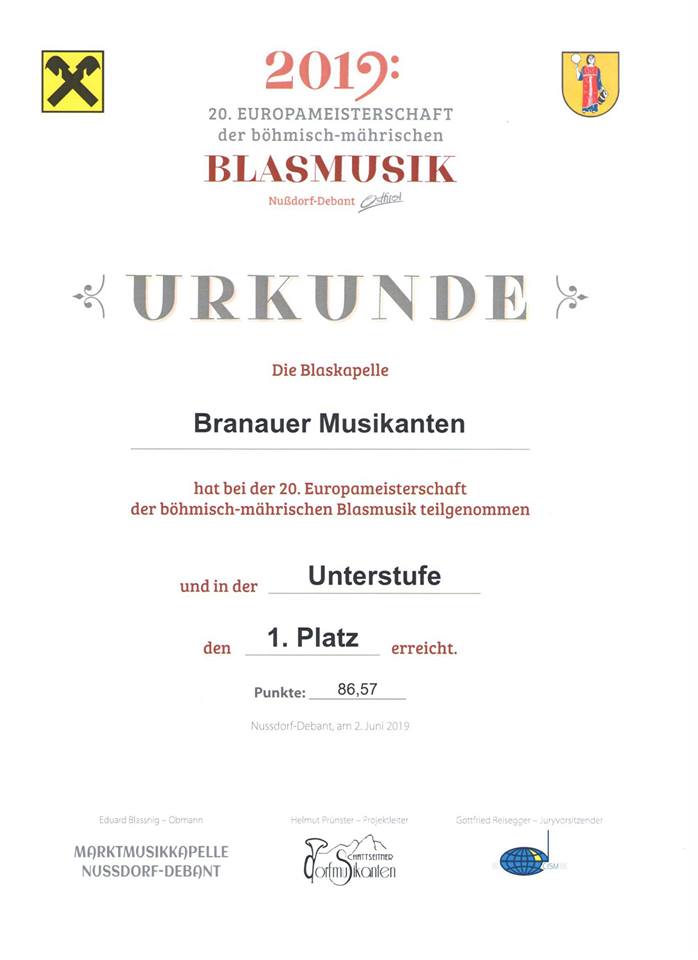 In Nußdorf (Tirol, Österreich) fand vom 31. Mai bis zum 2. Juni 2019 die 20. Europameisterschaft der böhmisch-mährischen Blasmusik statt.