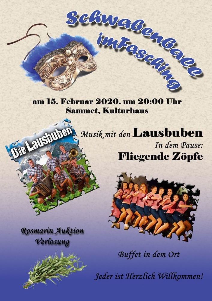 Schwabenball am 1. Februar 2020 ab 19 Uhr im Valeria-Koch-Bildungszentrum. (Öffnung: 18:00)