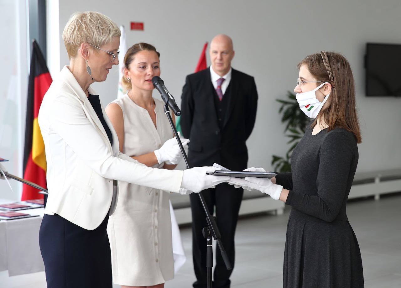 Im Juni 2020 beendeten neun Absolventinnen und Absolventen der kaufmännischen Berufsausbildung „Fremdsprachige/r Industriekauffrau/mann“ erfolgreich ihre zweijährige Ausbildung. Im Rahmen einer an Corona-Bedingungen geknüpften, aber dennoch feierlichen Zeugnisübergabe erhielten sie neben dem Landesabschluss der Ungarischen Industrie- und Handelskammer auch das begehrte Zertifikat ‚Deutsche duale Berufsbildung im Ausland‘ des Deutschen Industrie- und Handelskammertages (DIHK).