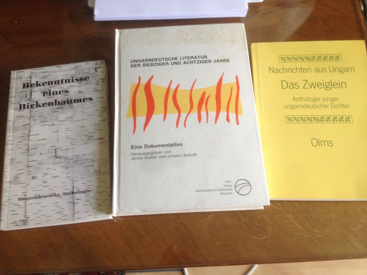1990 brachte die Rheinisch-Westfälische Auslandsgesellschaft Dortmund die Anthologie „Bekenntnisse eines Birkenbaumes“ heraus. Im Geleitwort schrieb der ungarische Staatspräsident Árpád Göncz: „Hier liegt ein seltenes, authentisches Zeugnis vor, das die Ungarndeutschen selbst über ihre Herkunft, Zugehörigkeit und Heimat erstellt haben: die kulturelle Selbstreflexion einer Volksgruppe.“ Ein Jahr später, 1991, erschien in der Reihe „Auslandsdeutsche Literatur“ des Olms-Verlages das Bändchen „Das Zweiglein“, das 1989 im Budapester Lehrbuchverlag veröffentlicht wurde und Texte junger, nach dem Zweiten Weltkrieg geborener Autoren beinhaltet. Der Generalsekretär des Stuttgarter Instituts für Auslandsbeziehungen, Michael Rehs, meint im Geleitwort: „Diese Zeugnisse noch jüngerer ungarndeutscher Autoren, die in sich Phantasie mit Präzision verschmelzen, entspringen nicht der Sprachbeherrschung, sondern dem Ringen mit ihr und zugleich dem Wunsch, die Muttersprache wieder zu entdecken, sie aus Fragmenten erneut zum Kunstwerk zusammenzufügen, ihr dichterisch den Rang wiederzugeben, der ihr gebührt. Aus noch unvollendeter Sprachbeherrschung ist in sich Dichtung geworden – Sprache als Abenteuer und Kunstwerk zugleich.“