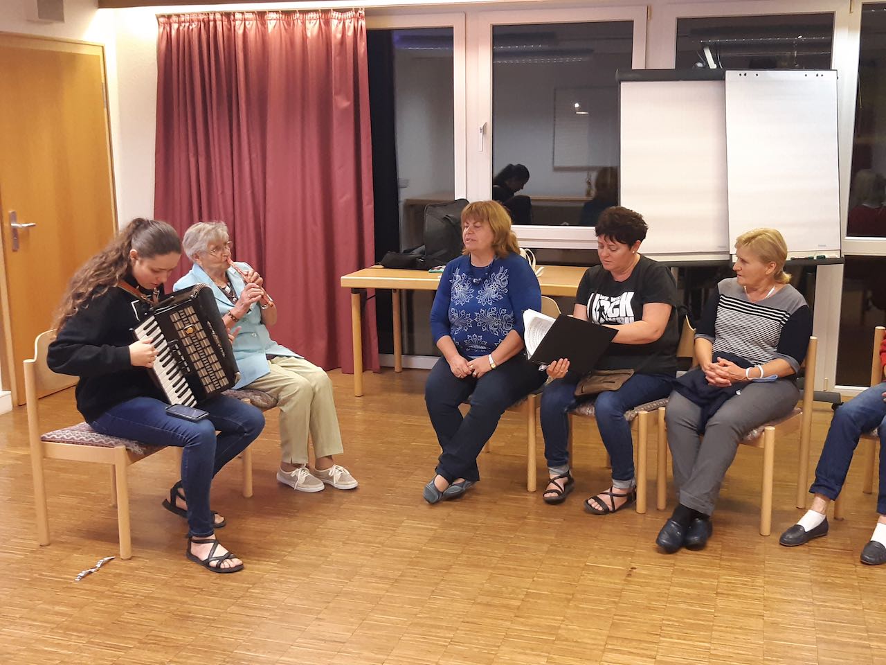 Als eindeutiger Höhepunkt des Freundschaftsausbaus diente der ungarndeutsche Abschlussabend, an dem der neue Film von Udo Pörschke Lissi – Portrait einer Ungarndeutschen vorgestellt wurde. Dies war unter anderem in der Hinsicht besonders interessant, weil seine Hauptfigur auch mit uns unterwegs war. Frau Lissi unterhielt sich mit uns fast ausschließlich in der Ofaler Mundart, und sie erzählte uns im Bus auch viele lustige und interessante Geschichten. Ich lernte in ihrer Person eine immer positive und lebensfrohe Frau kennen, die noch eine echte „Branauer Schwäbin“ ist. Nach der Premiere sorgten noch Kränzlein-Mitglied Boglárka Götcz mit ihrer Ziehharmonika und Frau Lissi mit ihrer Flöte für gute Laune. Die gemeinsame Reise endete mit der Hoffnung auf die Weiterentwicklung der Freundschaft bzw. es wurde ein Treffen für das nächste Jahr entweder in der Schweiz oder in Ungarn in Aussicht gestellt.
