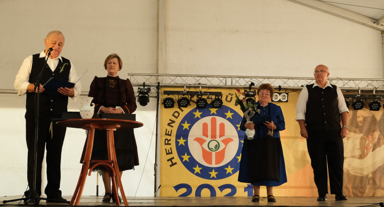 Den Ehrenpreis überreichten Franz Heilig und Ilona Piller-Fódi von der DNSV des Komitates Wesprim an Theresia Timer aus Ratot sowie an den stellvertretenden Vorsitzenden der Landesselbstverwaltung der Ungarndeutschen, László Schindler aus Band. Den Jugendpreis erhielten Marianna Molnár aus Waschon – den Preis hat ihre Mutter Éva Molnár entgegengenommen – sowie Szandra Holczinger aus Sitsch.