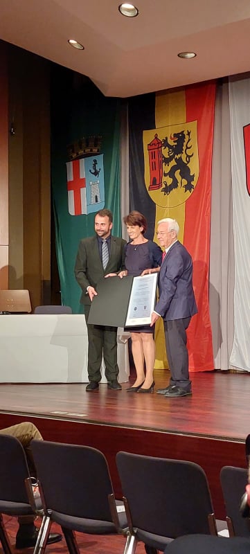 Am Abend wurde in der Schwabenlandhalle die Auszeichnung Europäische Sternschnuppe an Frau Olesch sowie an Herrn Flódung verliehen, wo auch der Städtepartnerschaftsvertrag von OB Zull und dem Vizebürgermeister der Stadt Pécs, Herrn Gábor Zag in Anwesenheit von Alt-OB Friedrich Wilhelm Kiel zur Bekräftigung erneut unterzeichnet wurde.