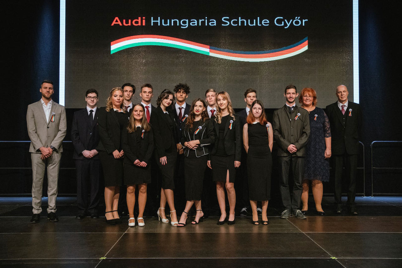 Dirk Lange, stellvertretender Schulleiter, begrüßte die Anwesenden und richtete ermunternde, aber auch nachdenkliche Worte an die angehenden Abiturientinnen und Abiturienten. Er hob die Bedeutung dieser Tradition hervor und betonte, dass das Bändchen die Zusammengehörigkeit symbolisiere; es versinnbildliche die Gemeinschaft, zu der die jungen Menschen gehören, und das gemeinsame Ziel, auf das sie hinarbeiten. Er wünschte den Schülerinnen und Schülern gutes Gelingen – sowohl für die Feier als auch für die bevorstehenden Prüfungsvorbereitungen und auch für ihren persönlichen Lebensweg – das notwendige Rüstzeug für die Zukunft bekommen sie von der Audi Hungaria Schule mit auf den Weg.