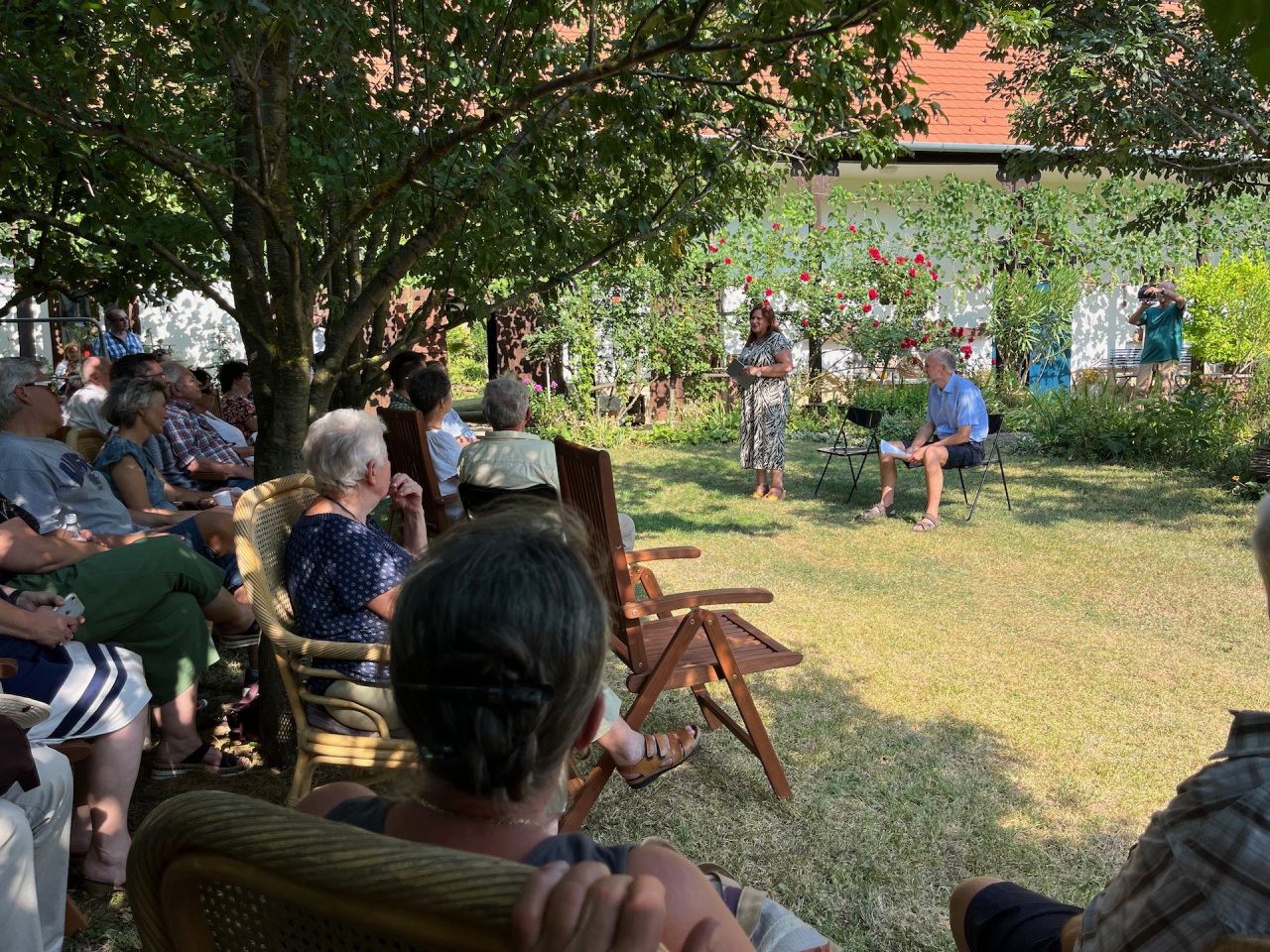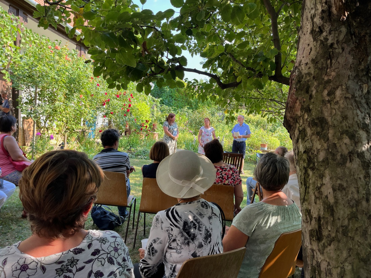 Die Ausstellung wurde von Monika Ambach, der Direktorin des Ungarndeutschen Kultur- und Informationszentrums und Bibliothek, eröffnet. Sie gab einen Überblick über die Geschichte der Fotografie aus volkskundlichem Aspekt, würdigte die Arbeit der Ehepaare Csorba-Lux und Pankotai-Lux, die ihr Versprechen einlösten und aus dem Lux-Haus eine Vorzeigebegegnungsstätte zauberten.